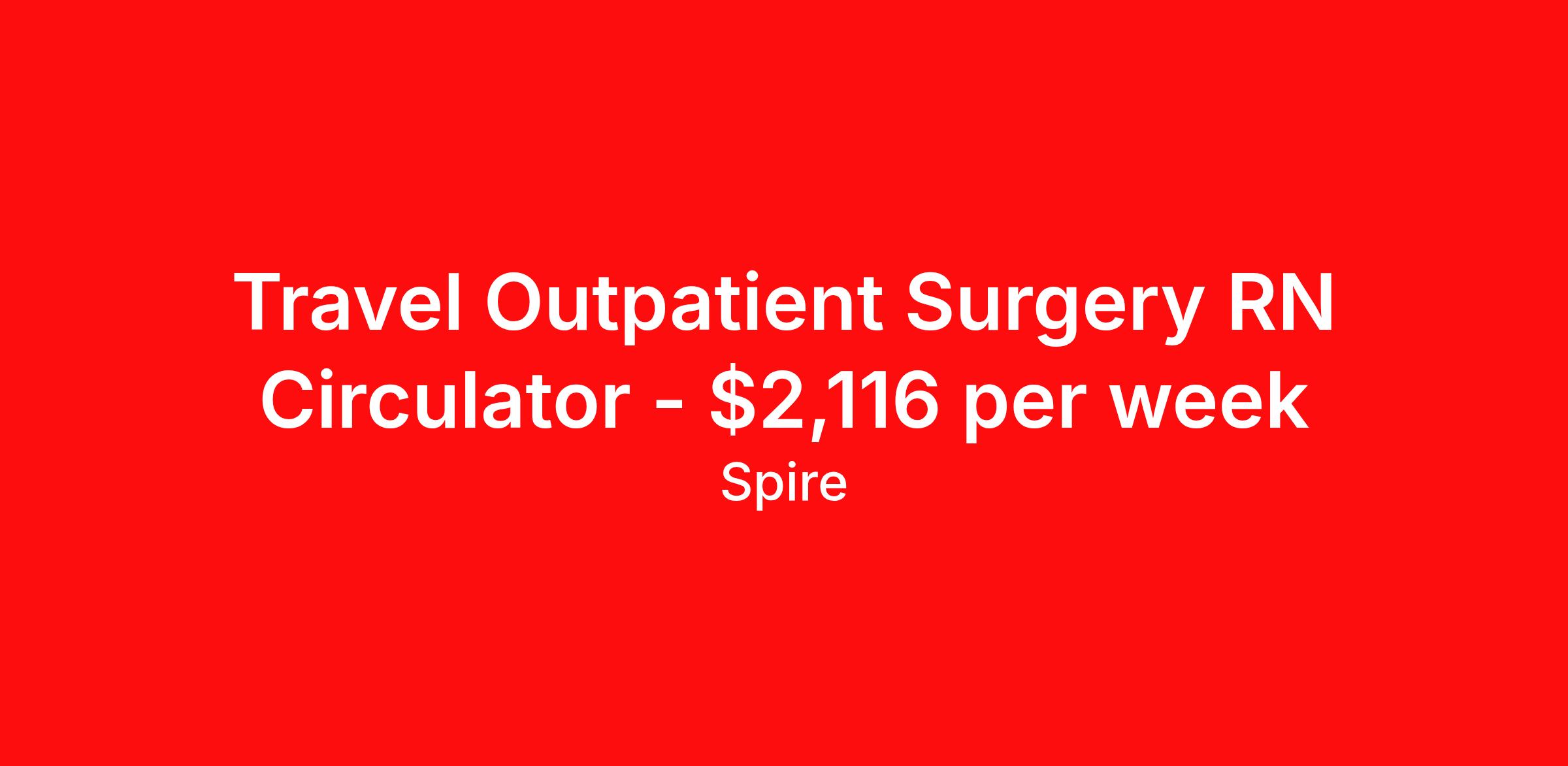 Travel Outpatient Surgery RN Circulator - $2,116 per week
