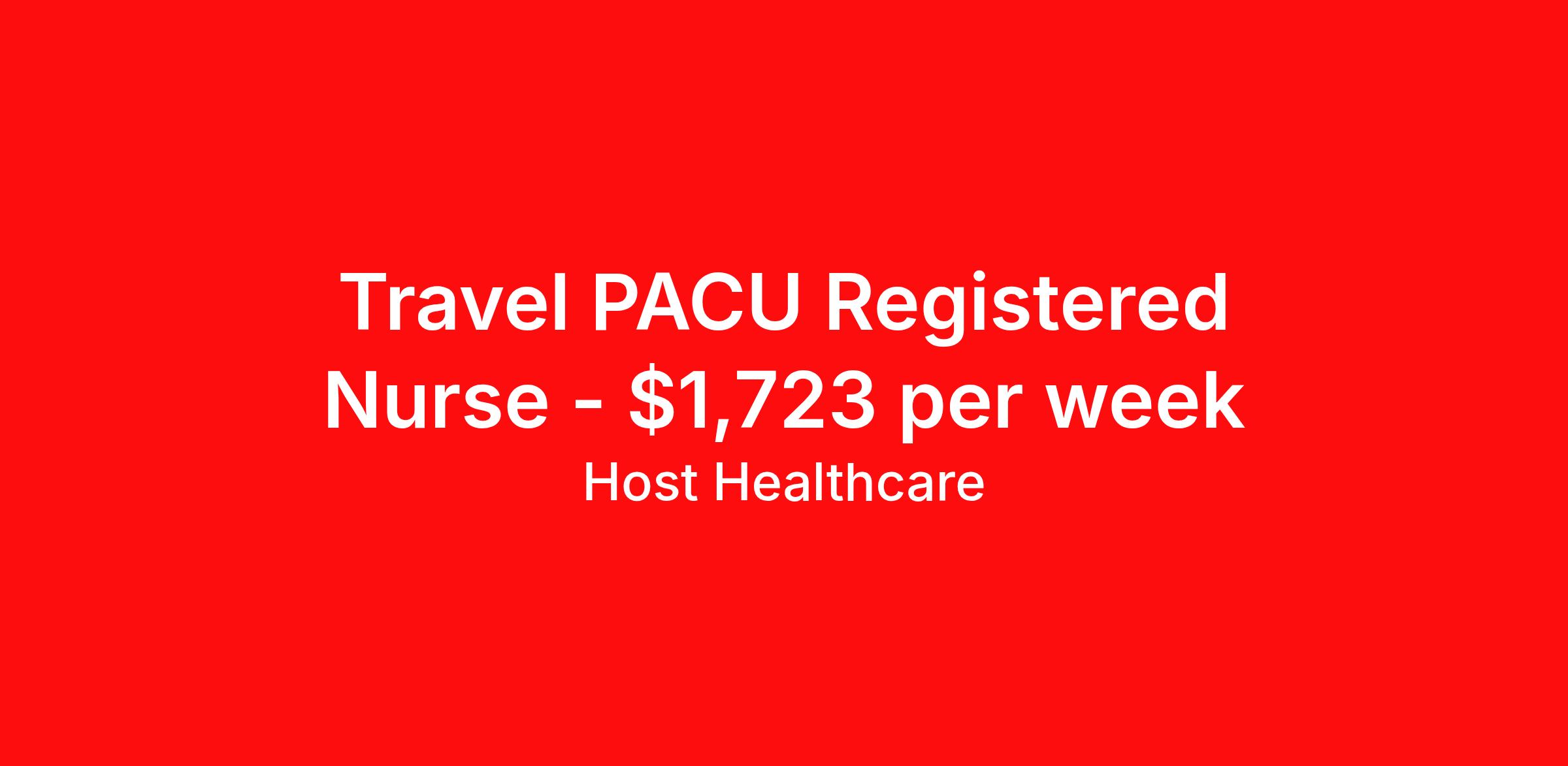 Host Healthcare is seeking a travel nurse RN PACU - Post Anesthesia Care for a travel nursing job in Nashville, Tennessee. Job Description & Requirements Specialty: PACU - Post Anesthesia Care Discipline: RN Start Date: ASAP Duration: 13 weeks 36 hours per week Shift: 12 hours, days Employment Type: Travel Host Healthcare Job ID a1fVX000002YaZNYA0. Pay package is based on 12 hour shifts and 36 hours per week (subject to confirmation) with tax-free stipend amount to be determined. Posted job title: RN - PACU About Host Healthcare At Host Healthcare, we provide a truly comfortable experience as you explore your travel nursing, therapy, or allied career. We make your travel healthcare journey easy by taking care of all the details, so you don’t have to. We are on a mission to help others live better and we do this by helping the healers of the world be as comfortable as possible. With access to tens of thousands of travel nursing, therapy, and allied jobs in all 50 states, our responsive and friendly recruiters find your dream position based on what’s important to you. During your assignment, get access to premium benefits, including Day 1 medical that continues up to 30 days between assignments, 401K matching, travel reimbursements, dedicated housing support, and more. We also offer 24/7 support from our team and access to our on-staff clinicians so you can feel comfortable and confident throughout your entire assignment. Travel comfortably with Host Healthcare. Benefits Referral bonus School loan reimbursement Vision benefits Wellness and fitness programs Company provided housing options License and certification reimbursement Life insurance Medical benefits Mileage reimbursement Pet insurance Discount program Employee assistance programs Guaranteed Hours Health savings account Holiday Pay 401k retirement plan Continuing Education Dental benefits