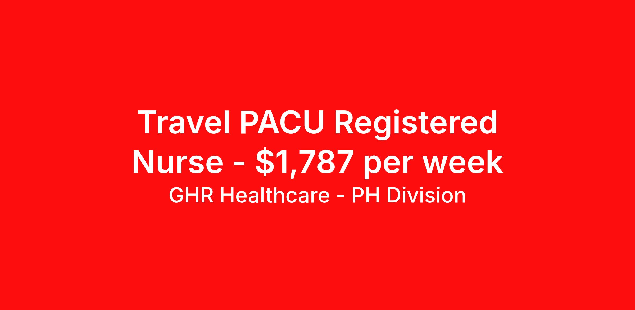 GHR Healthcare - PH Division is seeking a travel nurse RN PACU - Post Anesthesia Care for a travel nursing job in Asheville, North Carolina. Job Description & Requirements Specialty: PACU - Post Anesthesia Care Discipline: RN Start Date: ASAP Duration: 13 weeks 36 hours per week Shift: 12 hours Employment Type: Travel Planet Healthcare Job ID 75625692. Pay package is based on 12 hour shifts and 36 hours per week (subject to confirmation) with tax-free stipend amount to be determined. About GHR Healthcare - PH Division For over 30 years, GHR Healthcare has been the bridge between healthcare professionals and the facilities that need them nationwide. We're committed to uncovering your ideal fit, supported by GHR's dedication to competitive compensation, transparent communication, and a devoted team that genuinely cares about your career journey. You can trust us to stand by your side as your advocate, confidante, and partner in advancing your career. At GHR, care and consideration are at the heart of everything we do. Visit ghrhealthcare.com to learn more.