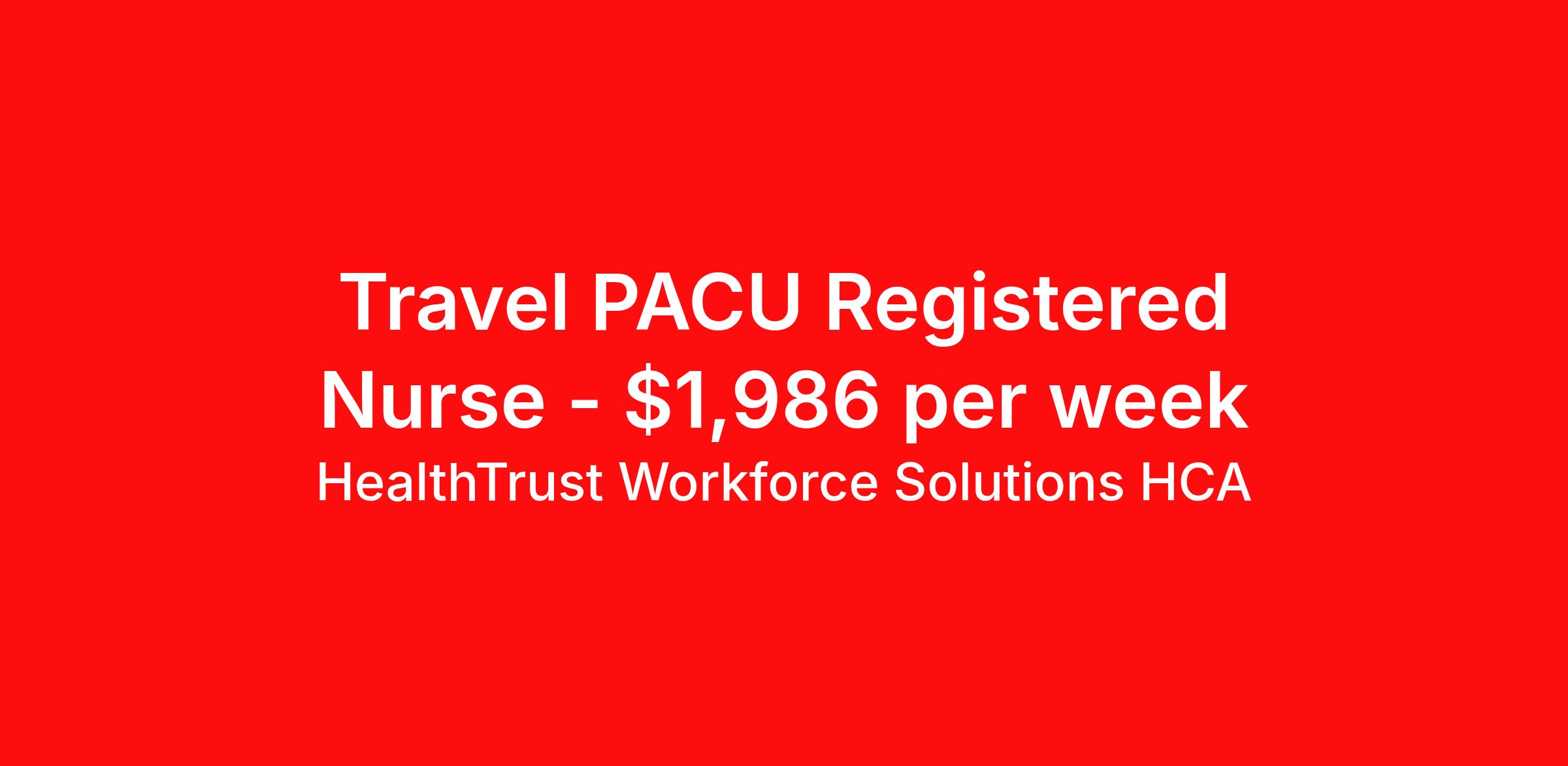 HealthTrust Workforce Solutions HCA is seeking a travel nurse RN PACU - Post Anesthesia Care for a travel nursing job in Nashville, Tennessee. Job Description & Requirements Specialty: PACU - Post Anesthesia Care Discipline: RN Duration: 13 weeks 36 hours per week Shift: 12 hours, days Employment Type: Travel Entrust Your Career to HealthTrust! At HealthTrust, we believe that healthcare is not defined by the four walls in which it is practiced; it’s defined by its people. We pride ourselves on crafting opportunities that expand skill sets, broaden career horizons, provide economic stability, and cultivate personal growth. HealthTrust Offers: Competitive Pay Packages Guaranteed hours Weekly direct deposit options 401k with Company Match Earn up to $750 for referrals Free Private Furnished Housing or Tax-Free Subsidy To get started, you will need: RN's a minimum of 1 year in specialty Allied 6 months of experience An adventurous spirit and fierce dedication Degree in corresponding specialty as required Appropriate certifications and licensure as needed for the specific position HealthTrust Benefits: Opportunities for a lifetime: When you become a part of the HCA family, you will have exclusive access to more opportunities than any other healthcare system in the nation. At HWS, we help open the door to a lifetime of lasting career opportunities. A culture of care: Our clinicians have made HWS an industry leader for over 25 years. We are passionate about our mission that, above all else, we are committed to the care and improvement of human life. Career Development: As a wholly owned subsidiary of HCA Healthcare, HWS is a preferred partner to thousands of top-performing hospitals. We provide our healthcare professionals with first-priority access to more than 200,000 jobs nationwide. We are uniquely positioned to offer you exclusive and direct access to HCA Healthcare’s vast network of facilities. Let us open the door to nationwide opportunities that fit your lifestyle! We are an equal opportunity employer and value diversity at our company. We do not discriminate on the basis of race, religion, color, national origin, gender, sexual orientation, age, marital status, veteran status, or disability status. Job Requirements Certifications ACLS (Required) BLS (Required) HealthTrust Workforce Solutions HCA Job ID 971487. Posted job title: Travel Nurse - Post-Anesthesia Care Unit (PACU) About HealthTrust Workforce Solutions HCA At HealthTrust Workforce Solutions, healthcare is not just about the four walls of a facility but about the people who provide and receive care. Our focus is on empowering healthcare professionals to deliver exceptional patient experiences by providing them with the necessary skills, tools, and support. We partner with healthcare facilities nationwide to ensure that the right professionals are in the right roles. We prioritize our clinicians by giving them a voice and access to opportunities to fulfill their mission of improving lives by providing quality patient care. We are committed to our core values of Trust, Innovation, Adaptability, Courage, and Accountability. We are dedicated to positively impacting the healthcare industry by providing first-priority access to more than 200,000 jobs nationwide to our healthcare professionals. Join us and be part of the HealthTrust family, where you can make a difference every day. We embrace our changing environment, and we maintain a culture that has a rich tradition of transforming itself to meet the challenges of the future. MISSION STATEMENT While putting great people in the right roles is essential, our mission is far greater. We want our clinicians to be part of the HealthTrust family, where healthcare professionals have a voice and are empowered with the right tools and opportunities to fulfill their personal mission of improving lives. Plus, as a preferred partner to thousands of top-performing hospitals, we provide our healthcare professionals with first-priority access to more than 200,000 jobs nationwide. Benefits Dental benefits Vision benefits Referral bonus Continuing Education Life insurance