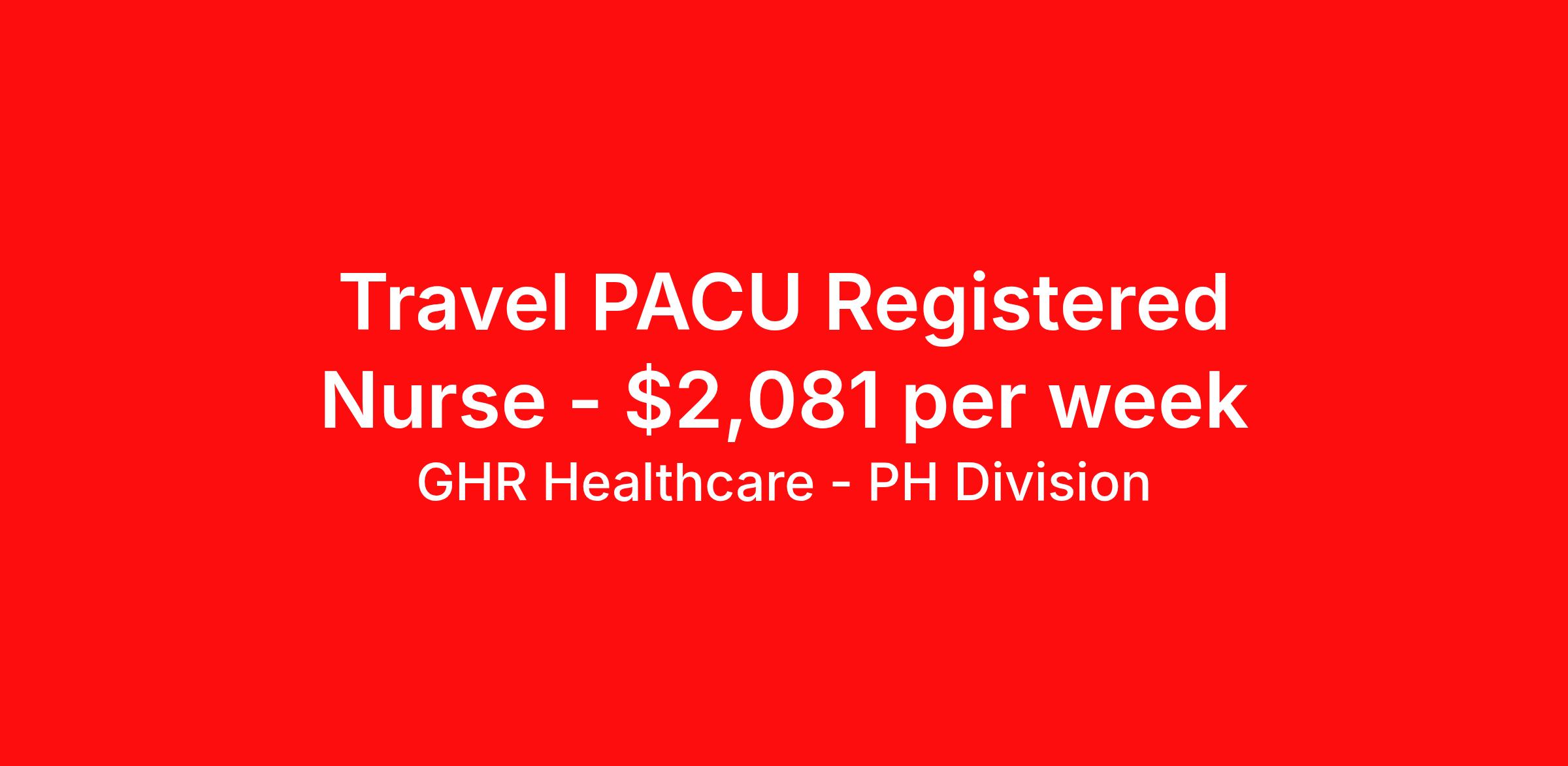 Travel PACU Registered Nurse - $2,081 per week