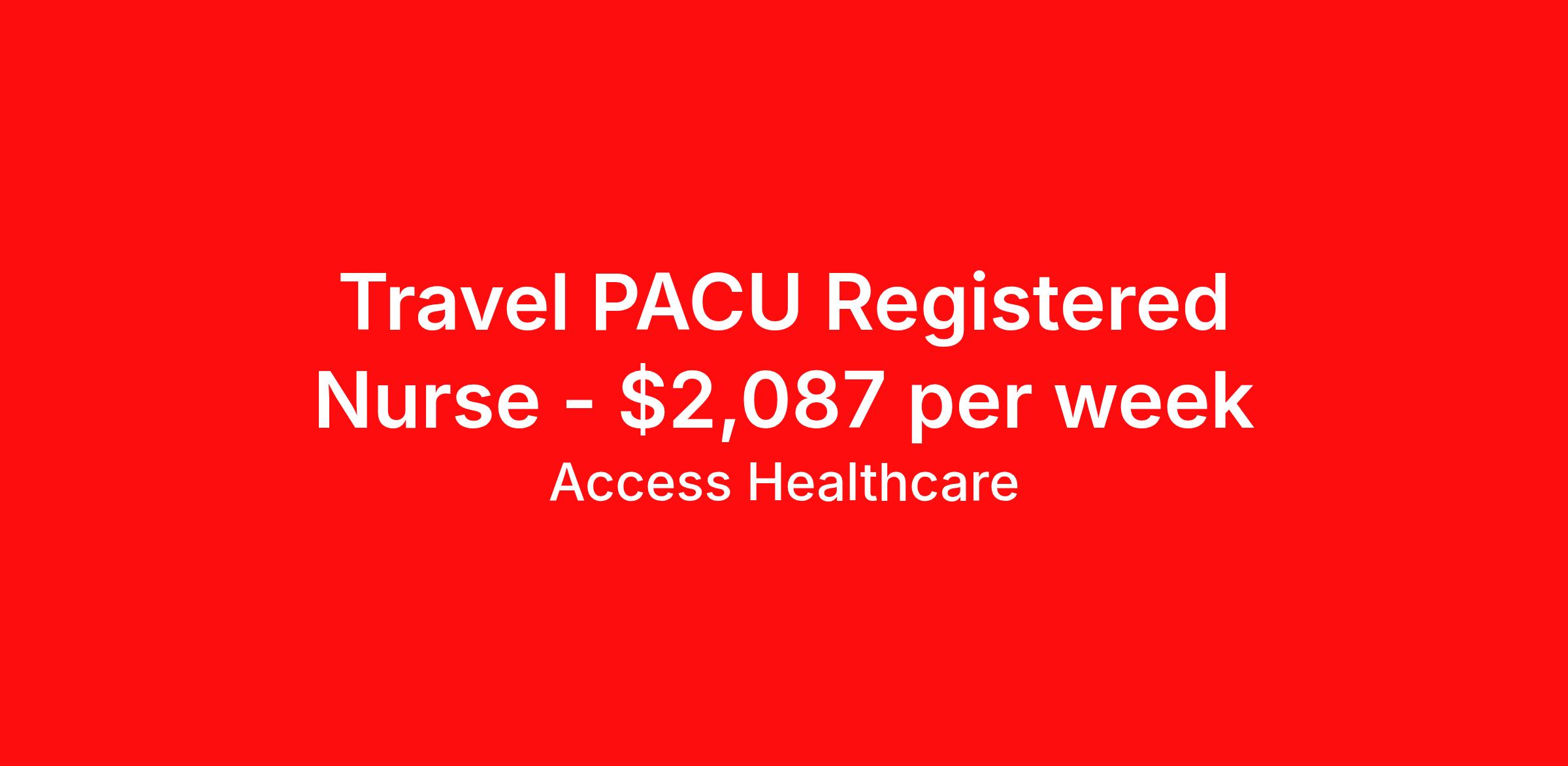 Access Healthcare is seeking a travel nurse RN PACU - Post Anesthesia Care for a travel nursing job in Saint Louis, Missouri. Job Description & Requirements Specialty: PACU - Post Anesthesia Care Discipline: RN Start Date: 04/27/2026 Duration: 13 weeks 36 hours per week Shift: 12 hours, nights Employment Type: Travel Access Healthcare Job ID 76270762. Pay package is based on 12 hour shifts and 36 hours per week (subject to confirmation) with tax-free stipend amount to be determined. About Access Healthcare Access Healthcare aims to provide superior service to our nursing family by providing around the clock support, competitive pay packages and an unmatched benefits package! Unlike other agencies, we offer a true family feel and work with you to find the placement that is right for you. We offer one of the top leading pay packages in the industry and we are ready to get you the money you deserve! Access Healthcare was founded by two travel nurses, Danielle and Diego, who had a dream and a shared vision of creating an agency which all nurses would want to work with. Our passion has led us to where we are today as one of the top 10 agencies in our home state of New Jersey, with access to contracts in all 50 states! We encourage you to join our team and we cannot wait to get to know you!