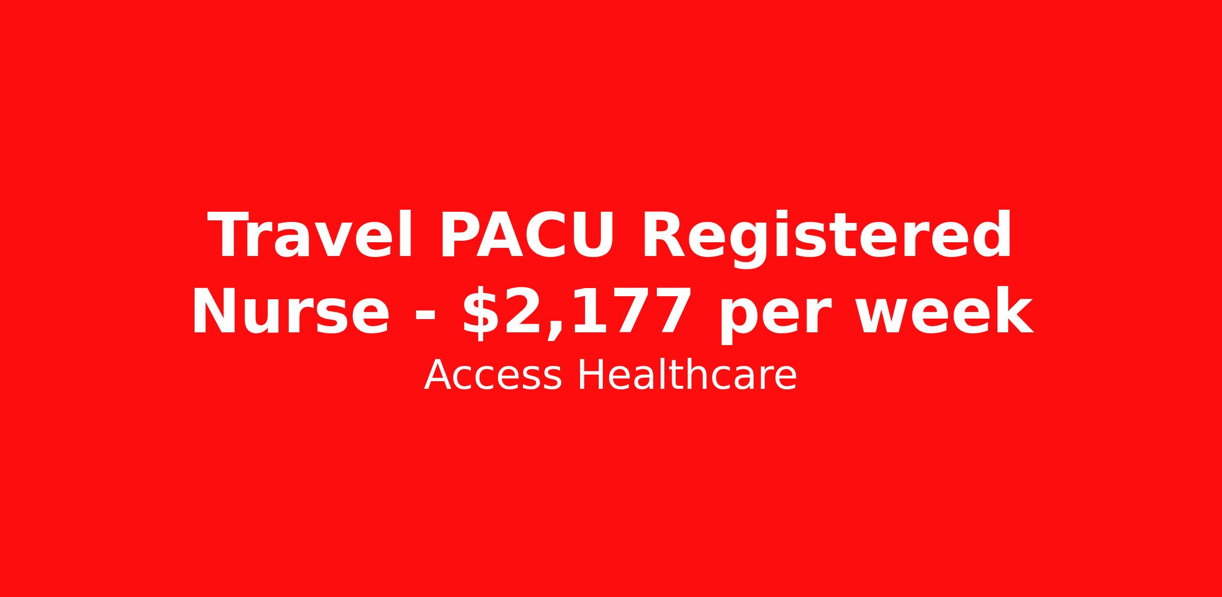 Access Healthcare is seeking a travel nurse RN PACU - Post Anesthesia Care for a travel nursing job in Springfield, Illinois. Job Description & Requirements Specialty: PACU - Post Anesthesia Care Discipline: RN Start Date: 04/13/2026 Duration: 13 weeks 36 hours per week Shift: 12 hours, days Employment Type: Travel Access Healthcare Job ID 75444194. Pay package is based on 12 hour shifts and 36 hours per week (subject to confirmation) with tax-free stipend amount to be determined. About Access Healthcare Access Healthcare aims to provide superior service to our nursing family by providing around the clock support, competitive pay packages and an unmatched benefits package! Unlike other agencies, we offer a true family feel and work with you to find the placement that is right for you. We offer one of the top leading pay packages in the industry and we are ready to get you the money you deserve! Access Healthcare was founded by two travel nurses, Danielle and Diego, who had a dream and a shared vision of creating an agency which all nurses would want to work with. Our passion has led us to where we are today as one of the top 10 agencies in our home state of New Jersey, with access to contracts in all 50 states! We encourage you to join our team and we cannot wait to get to know you!