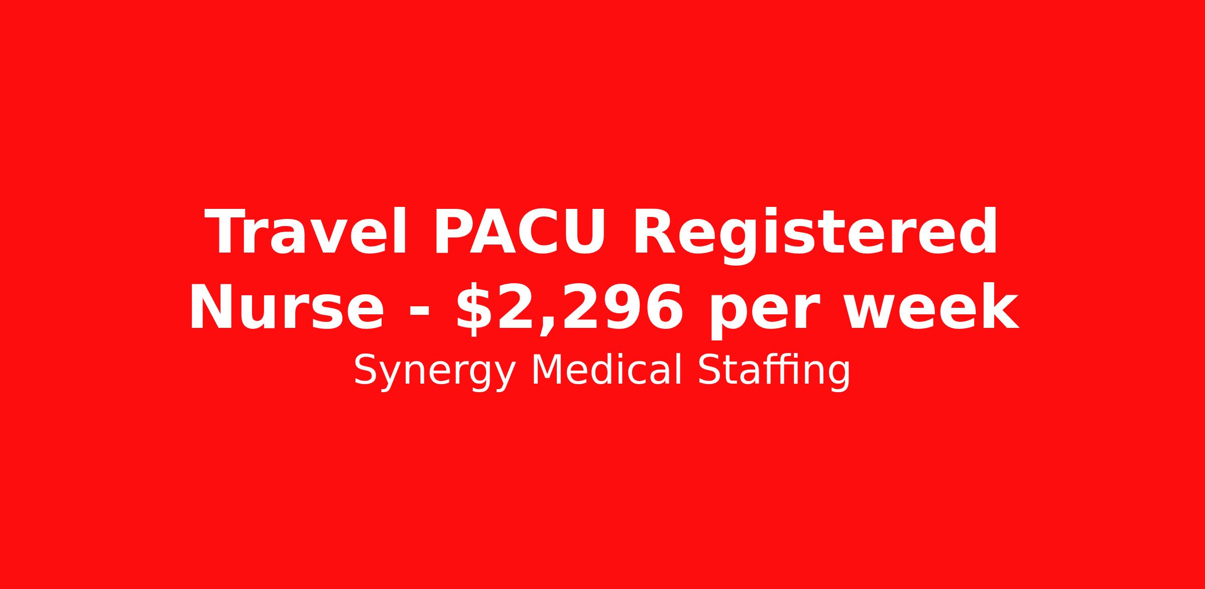Synergy Medical Staffing is seeking a travel nurse RN PACU - Post Anesthesia Care for a travel nursing job in Boston, Massachusetts. Job Description & Requirements Specialty: PACU - Post Anesthesia Care Discipline: RN Start Date: 04/26/2026 Duration: 13 weeks 36 hours per week Shift: 12 hours, nights Employment Type: Travel Travel, RN - PACU Location: Boston, Massachusetts Shift: 3X12 Nights, 19:00:00-07:00:00, 12.00-3 Duration 13 Weeks When you join Synergy Medical Staffing, you’ll have a dedicated recruiter helping you at all times. Your recruiter is a cross between a career coach and a concierge. They will help you fine-tune your resume, find your next job, and locate an apartment (even one that takes pets!). Make one call and get help with everything from placement to housing to payroll, even travel directions! As a travel, contract and permanent placement medical staffing company with over 20 years of experience in the industry, we understand your needs. Synergy’s Benefits are best in class and include the following: 401K that matches up to 5% of your pay and you are 100% vested from Day 1. Medical, Dental, Vision, Life insurance, Long and short-term disability and others Loyality Program Weekly pay Holiday Pay (varies by Assignment) Guaranteed Hours (varies by Assignment) Referral bonus Continuing Education License and certification reimbursement Synergy Medical Staffing Job ID 35980705. Pay package is based on 12 hour shifts and 36.0 hours per week (subject to confirmation) with tax-free stipend amount to be determined. Posted job title: RN:PACU,19:00:00-07:00:00 About Synergy Medical Staffing When you join Synergy Medical Staffing, you’ll have a dedicated recruiter helping you at all times. Your recruiter is a cross between a career coach and a concierge. They will help you fine-tune your resume, find your next job, and locate an apartment (even one that takes pets!). Make one call and get help with everything from placement to housing to payroll, even travel directions! As a travel, contract and permanent placement medical staffing company with over 12 years of experience in the industry, we understand your needs. Are you interested in traveling, or just a job around the corner? Whatever your preference, you can be sure there are plenty of Nursing Jobs, Allied Jobs and Physical Therapy Jobs, Occupational Therapy Jobs, Speech Therapy Jobs and Rehab Therapy jobs anywhere you want to go. Synergy Medical Staffing professionals have been in the Medical staffing employment and staffing industry for over 12 years, and have developed solid relationships with numerous healthcare facilities nationwide. Contact us now and expand your medical career with new opportunities from Synergy Medical Staffing. Synergy’s Benefits are best in class and include the following 401K Day 1 Full Medical, Dental, Vision, Life insurance, Long and short term disability and others Student Loan Repayment and CEU reimbursement Loyalty bonus after 600 hours Benefits Discount program Weekly pay Holiday Pay Guaranteed Hours Referral bonus Medical benefits Dental benefits Continuing Education License and certification reimbursement Life insurance 401k retirement plan Cancelation protection Vision benefits