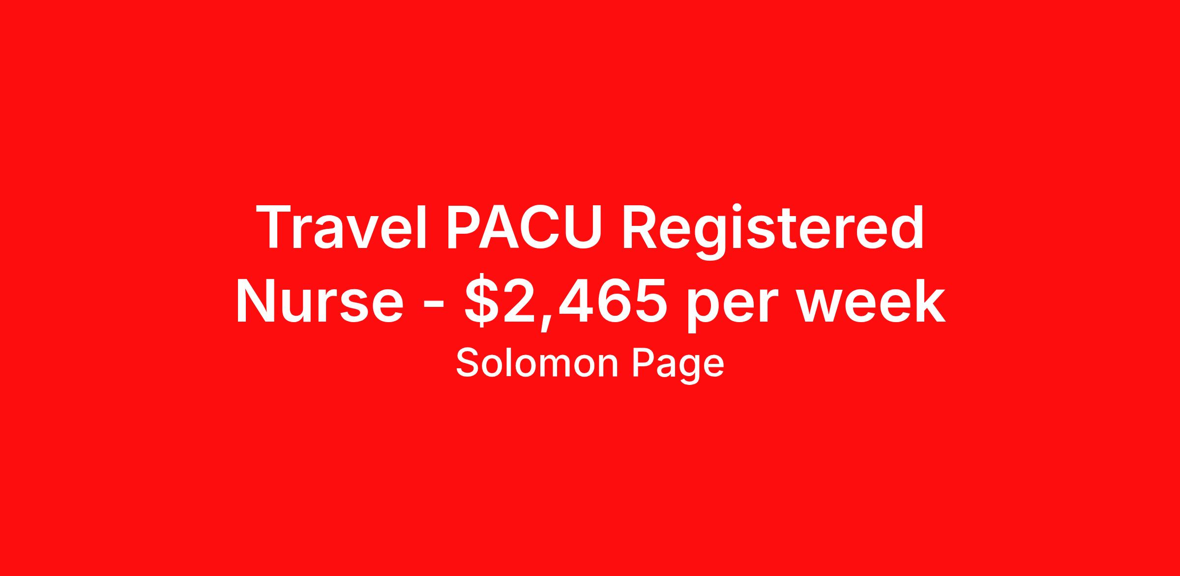 Solomon Page is seeking a travel nurse RN PACU - Post Anesthesia Care for a travel nursing job in Boston, Massachusetts. Job Description & Requirements Specialty: PACU - Post Anesthesia Care Discipline: RN Start Date: 04/19/2026 Duration: 13 weeks 36 hours per week Shift: 12 hours, nights Employment Type: Travel Our client is looking to add a Registered Nurse to their team. Job Details: Location: Boston, Massachusetts Duration: 13 Weeks Start Date: 04/19/2026 Shift: 3x12 Nights Estimated Gross Weekly Pay: 2465 Qualifications: Current Massachusetts license Excellent interpersonal skills including patience, empathy, and compassion Effective communication skills, including active listening, writing, speaking and reading comprehension Fast and adaptive problem-solving abilities Ability to stand for long periods of time If you meet the required qualifications and are interested in this role, please apply today. Why Work with Us The success of Solomon Page is defined by our people. Offering a comprehensive benefits package, travel nurses have immediate access to medical coverage and ReviveHealth virtual care. Additionally, you are offered access to dental and vision coverage, commuter benefits, a 401(k) plan, flexible spending, referral bonuses, ongoing training, and more. As an ESOP company, Solomon Page offers an employee stock ownership plan to all consultants. As a member of our traveler community, you will join a nurturing culture that fosters your career goals. Solomon Page can connect you with your next opportunity – whether it is in your hometown, or you are looking to travel to a new destination. About Solomon Page Healthcare & Medical Staffing Accredited by the Joint Commission with the Gold Seal of Approval, Solomon Page prides ourselves in developing long-term relationships with healthcare providers based on trust and respect. Our experienced Healthcare and Medical Staffing experts are committed to providing safe and quality patient care through our wide network of travel nurses, locum tenens, and allied resources. For more information and additional healthcare opportunities, visit: solomonpage.com and connect with Solomon Page on Instagram, Facebook, Twitter, LinkedIn, and TikTok. Solomon Page Job ID 433608. Pay package is based on 12 hour shifts and 36 hours per week (subject to confirmation) with tax-free stipend amount to be determined. Posted job title: nurse - rn - pacu | boston, massachusetts About Solomon Page Founded in 1990, Solomon Page has grown to be a leader in the staffing industry. As a member of our healthcare provider community, you will join a nurturing culture that fosters your career goals. We have the network and resources to connect you with your next opportunity – whether it is in your hometown, or you are looking to travel to a new destination. Accredited by the Joint Commission with the Gold Seal of Approval, Solomon Page prides itself in developing long-term relationships with healthcare providers based on trust and respect. Headquartered in New York with offices throughout the United States our experienced healthcare and medical staffing experts are committed to providing safe and quality patient care through our wide network of travel nurses, locum tenens, and allied resources. For more information and additional healthcare opportunities, visit: solomonpage.com /healthcare and connect with us on Facebook , Twitter , Instagram , Tik Tok , and LinkedIn. ReviveHealth Virtual Care: Available immediately. Receive free, 100% company paid, virtual care access. Upon commencement of your employment, Solomon Page offers automatic enrollment into ReviveHealth, which offers concierge, membership-based access to virtual primary care, urgent care, mental health therapy, a vision program, and prescription medications. Medical Coverage : Available immediately . Whether you are looking to enroll in single or family insurance, you have immediate access to quality coverage. Dental Coverage : Available the 1st of the month after your hire date . We offer dental insurance to you and your dependents. Vision Coverage : Available the 1st of the month after your hire date . We offer vision insurance to you and your dependents. Commuter Benefits: Available the 1st of the month after your hire date . Set aside pre-tax money to pay for public transportation. 401K Plan: Associates can enroll in the 401K plan after they have worked 1000 hours. ESOP Benefits: As an ESOP company, Solomon Page offers an employee stock ownership plan. Referral Bonus: A cash bonus is offered for referring a candidate to Solomon Page who gets placed. Training & Support: Training programs and ongoing career coaching and support is offered to consultants. Benefits Medical benefits Dental benefits Vision benefits 401k retirement plan Referral bonus