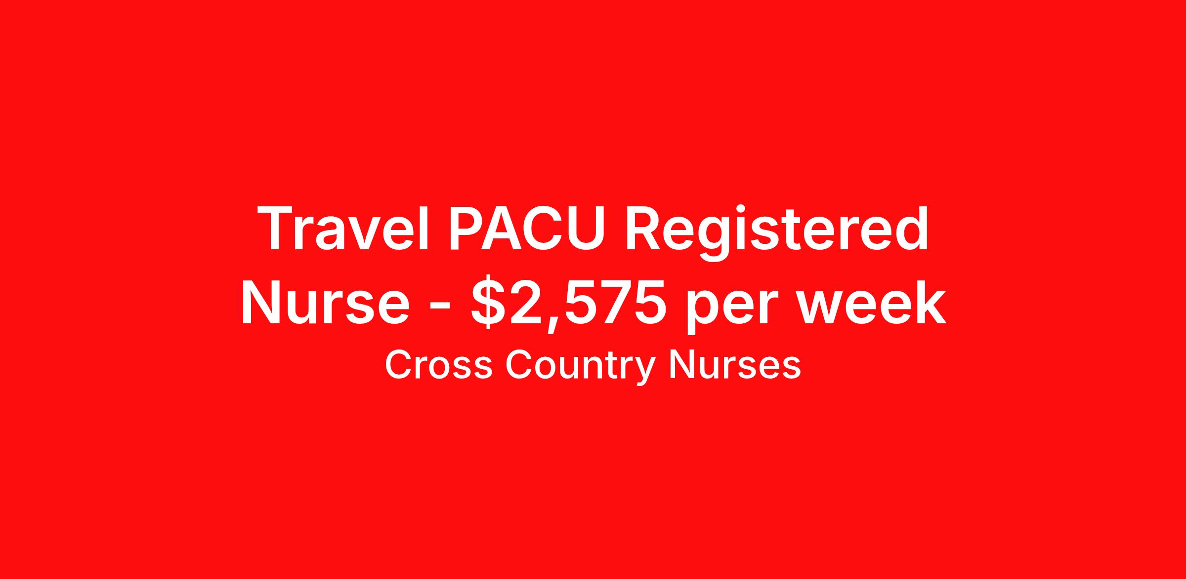 Cross Country Nurses is seeking a travel nurse RN PACU - Post Anesthesia Care for a travel nursing job in Murfreesboro, Tennessee. Job Description & Requirements Specialty: PACU - Post Anesthesia Care Discipline: RN Start Date: 03/23/2026 Duration: 13 weeks 32 hours per week Shift: 8 hours, days Employment Type: Travel Job Description As a post-anesthesia care unit nurse (RN PACU), you will provide short-term care to patients immediately following surgery, from 30 minutes to several hours post-op. Patient observation is essential to your job, including regularly taking vitals, ensuring proper breathing, and administering oxygen or pain medication when necessary. You may also care for patients in the pre-op setting managing their needs and preparing them for surgery. In this role, you must quickly respond to any change in a patient's condition, beginning CPR if necessary. Minimum Requirements At least 1 year of recent acute care experience in specialty Active RN license Benefits The benefits of taking a travel nursing job with Cross Country include: Private housing or generous housing allowance Comprehensive health insurance with prescription coverage Dependent health insurance with prescription coverage Competitive salaries Referral bonuses Travel reimbursement 401(k) retirement plan Direct deposit/free checking Unlimited free CE credits Cross Country Job ID 1229153. Pay package is based on 8 hour shifts and 32 hours per week (subject to confirmation) with tax-free stipend amount to be determined. Posted job title: Registered Nurse / Post Anesthesia Care Unit About Cross Country Nurses You care for others — we’re here to care for you. At Cross Country, we know travel nursing is about more than just the job. It’s about building a career that supports your lifestyle, your values, and your impact. We offer competitive pay, full benefits, and 24/7 support from a team that truly understands what it means to be on the front lines. Wherever your journey takes you, we’re with you every step of the way. Let’s build your best life — one assignment at a time. Benefits 401k retirement plan Referral bonus