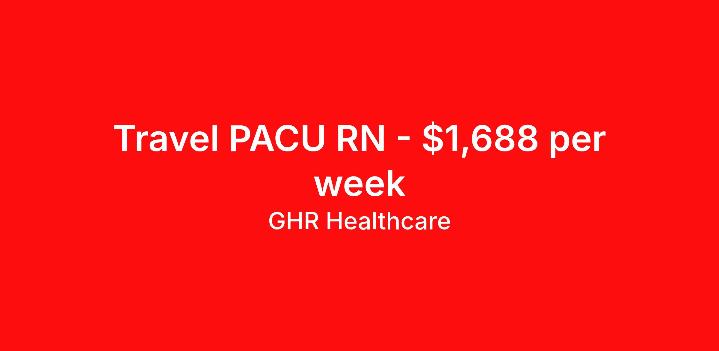 GHR Healthcare is seeking a travel nurse RN PACU - Post Anesthesia Care for a travel nursing job in Beaumont, Texas. Job Description & Requirements Specialty: PACU - Post Anesthesia Care Discipline: RN Start Date: 03/30/2026 Duration: 13 weeks 36 hours per week Shift: 12 hours Employment Type: Travel GHR Healthcare Job ID 76308733. Pay package is based on 12 hour shifts and 36 hours per week (subject to confirmation) with tax-free stipend amount to be determined. About GHR Healthcare For over 30 years, GHR Healthcare has been the bridge between healthcare professionals and the facilities that need them nationwide. We're committed to uncovering your ideal fit, supported by GHR's dedication to competitive compensation, transparent communication, and a devoted team that genuinely cares about your career journey. You can trust us to stand by your side as your advocate, confidante, and partner in advancing your career. At GHR, care and consideration are at the heart of everything we do. Visit ghrhealthcare.com to learn more.