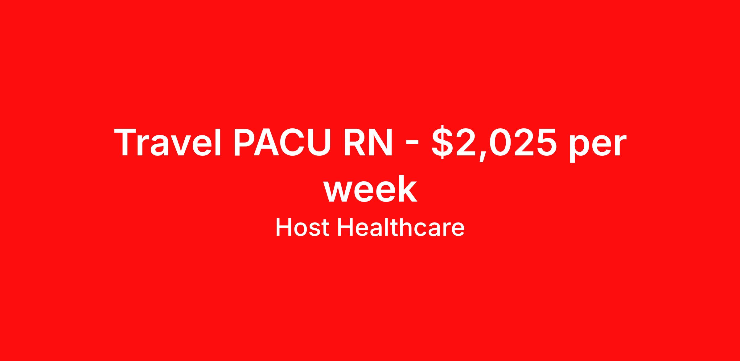 Host Healthcare is seeking a travel nurse RN PACU - Post Anesthesia Care for a travel nursing job in Dublin, Ohio. Job Description & Requirements Specialty: PACU - Post Anesthesia Care Discipline: RN Start Date: 04/05/2026 Duration: 13 weeks 36 hours per week Shift: 12 hours, days Employment Type: Travel Host Healthcare Job ID a1fVX000002zjblYAA. Pay package is based on 12 hour shifts and 36 hours per week (subject to confirmation) with tax-free stipend amount to be determined. Posted job title: RN - PACU About Host Healthcare At Host Healthcare, we provide a truly comfortable experience as you explore your travel nursing, therapy, or allied career. We make your travel healthcare journey easy by taking care of all the details, so you don’t have to. We are on a mission to help others live better and we do this by helping the healers of the world be as comfortable as possible. With access to tens of thousands of travel nursing, therapy, and allied jobs in all 50 states, our responsive and friendly recruiters find your dream position based on what’s important to you. During your assignment, get access to premium benefits, including Day 1 medical that continues up to 30 days between assignments, 401K matching, travel reimbursements, dedicated housing support, and more. We also offer 24/7 support from our team and access to our on-staff clinicians so you can feel comfortable and confident throughout your entire assignment. Travel comfortably with Host Healthcare. Benefits Referral bonus School loan reimbursement Vision benefits Wellness and fitness programs Company provided housing options License and certification reimbursement Life insurance Medical benefits Mileage reimbursement Pet insurance Discount program Employee assistance programs Guaranteed Hours Health savings account Holiday Pay 401k retirement plan Continuing Education Dental benefits