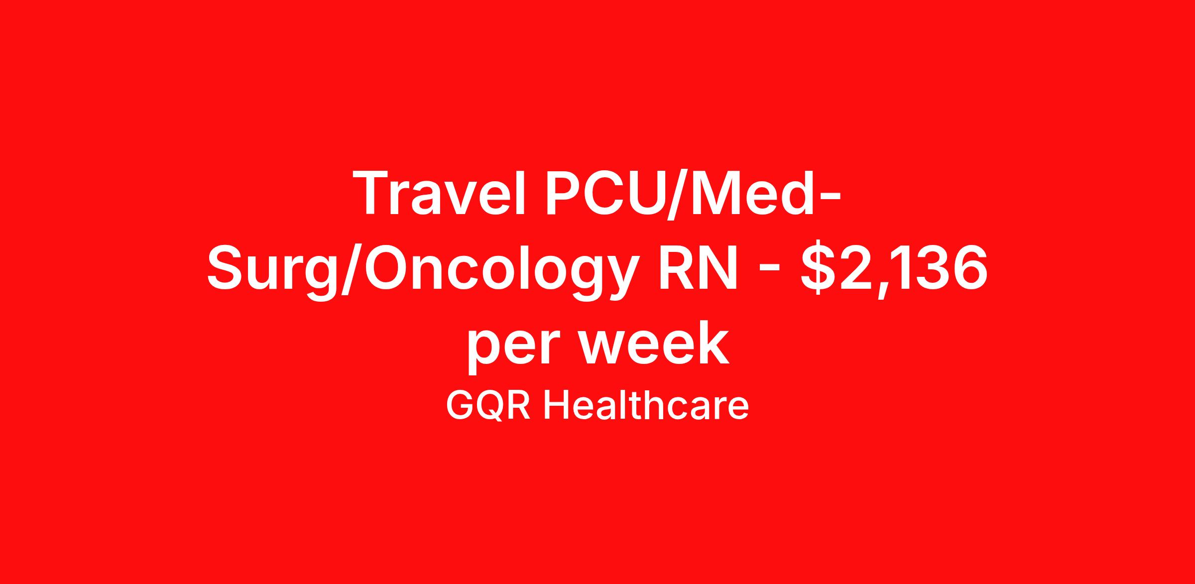 GQR Healthcare is seeking a travel nurse RN PCU - Progressive Care Unit Med Surg for a travel nursing job in Omaha, Nebraska. Job Description & Requirements Specialty: PCU - Progressive Care Unit Discipline: RN Start Date: 03/30/2026 Duration: 13 weeks 36 hours per week Shift: 12 hours, nights Employment Type: Travel Contract - W2 Progressive Care Unit (PCU) Registered Nurse (RN) Job Location: Omaha, Nebraska Start Date: March 30, 2026 Profession: Registered Nurse (RN) Facility: Estimated Pay: $2136.16 - $2231.16 Duration:13 weeks Specialty:Progressive Care Unit (PCU) Shift: Night Shift Details: 3x12 Night Job Type: Travel *Estimated weekly pay includes projected hourly wages and weekly meal and lodging per diems for eligible clinicians based on nationally published GSA rates. Actual weekly pay and per diems may differ from the amount shown and are subject to change during an assignment. Benefits: Day 1 Insurance Cigna medical, MetLife dental and vision insurance License reimbursement for new licenses needed for each assignment Discounts with hotels and rental cars A dedicated recruiter and support team that will help you every step of the way to sure you start on time and have an exceptional experience Referral bonus up to $700 About the Company: Finding the right role is about more than just matching skills to a job—it’s about aligning with your goals, values, and the way you want to work. As an award-winning talent partner, we support healthcare professionals through every step of that process, offering meaningful opportunities, clear guidance, and long-term partnership. From our first conversation to your first day on the job (and beyond!), we’re here to help you move forward with confidence. GQR Job ID 784443. Pay package is based on 12 hour shifts and 36 hours per week (subject to confirmation) with tax-free stipend amount to be determined. Posted job title: Registered Nurse (RN) About GQR Healthcare GQR’s Healthcare team specializes in connecting experts within the industry to highly skilled healthcare professionals across the US market. In the competitive healthcare market, we recognize that the industry’s common goals of improved quality of care and patient outcomes are wholly reliant upon the professionals directly supporting these initiatives. Leveraging our extensive candidate network, we deliver continuity of care for the communities our partners serve to ensure the patient experience is of the highest quality. Through deep market specialization and a unique approach to talent acquisition, GQR Healthcare provides an unparalleled and personalized experience across all medical specialties in nursing and within diverse healthcare platforms across the industry.
