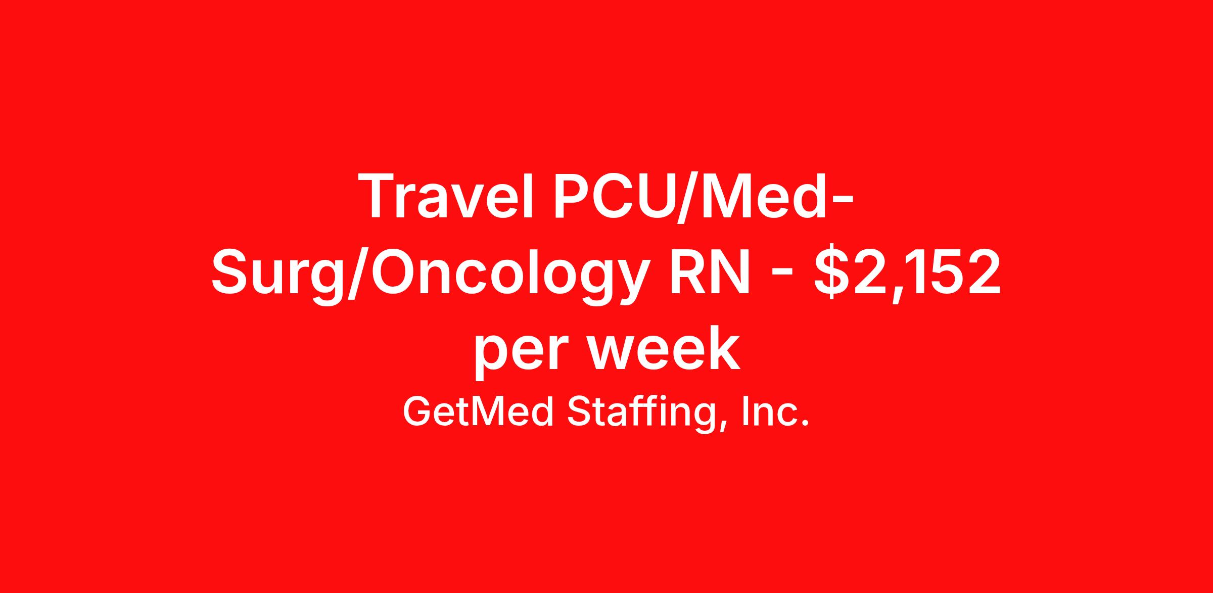 GetMed Staffing, Inc. is seeking a travel nurse RN Med Surg for a travel nursing job in Omaha, Nebraska. Job Description & Requirements Specialty: Med Surg Discipline: RN Start Date: 03/30/2026 Duration: 13 weeks 36 hours per week Shift: 12 hours, nights Employment Type: Travel GetMed Staffing, Inc. Job ID 36043326. Pay package is based on 12 hour shifts and 36.0 hours per week (subject to confirmation) with tax-free stipend amount to be determined. Posted job title: RN:MedSurg,19:00:00-07:00:00 About GetMed Staffing, Inc. We are a diversity owned company, specializing in healthcare recruiting services. We truly understand how important a healthcare travelers' relationship is with their recruiter, as well as our relationship is with our healthcare facilities. We recognize that the needs of our healthcare travelers can vary, and therefore we provide the personalized touch necessary to ensure a successful travel assignment each and every time. Our healthcare facilities and clients benefit from us putting our healthcare travelers first. GetMed Staffing is excited to be a leader within the industry by focusing on providing healthcare travelers with more choices and possibilities as they plan for their next healthcare travel assignment. Benefits Life insurance Medical benefits Dental benefits Vision benefits 401k retirement plan