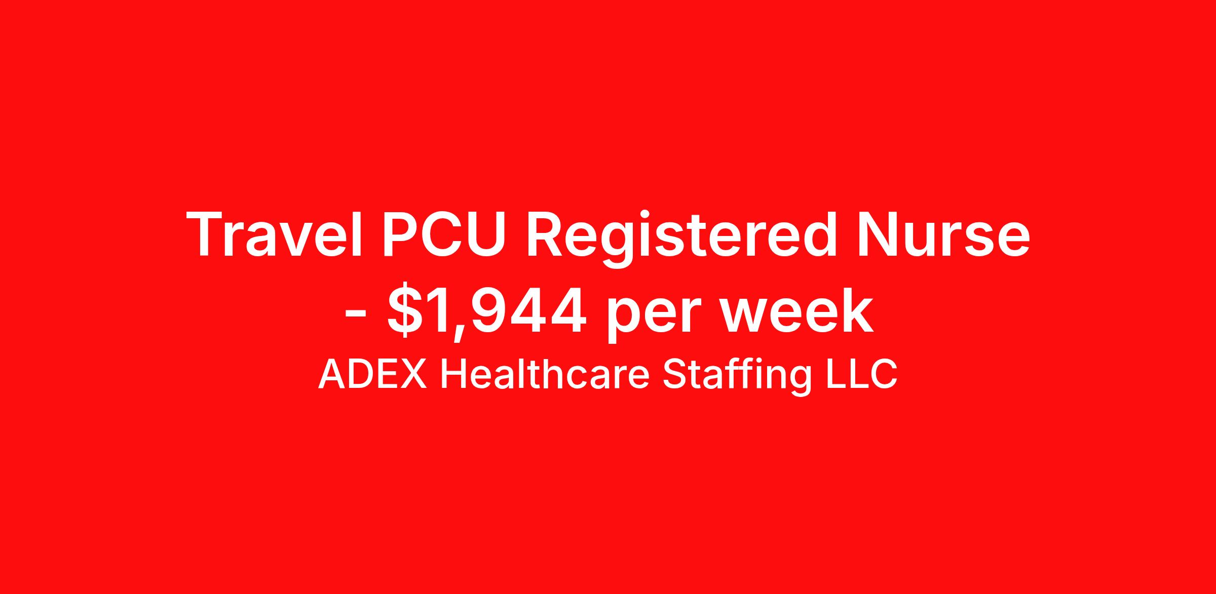 ADEX Healthcare Staffing LLC is seeking a travel nurse RN PCU - Progressive Care Unit Med Surg for a travel nursing job in Anniston, Alabama. Job Description & Requirements Specialty: PCU - Progressive Care Unit Discipline: RN Start Date: 03/30/2026 Duration: 12 weeks 36 hours per week Shift: 12 hours, nights Employment Type: Travel RN Position Job Notes: Travel or Local Registered Nurse needed for ASAP start. A minimum of 2 years of recent hospital bedside experience is required. Candidates must be able to start within 5 weeks. Opportunity for extension upon successful completion of the initial assignment. $750 referral bonus available. Opportunity: Registered Nurse - PCU Job Details: • Work every other weekend with 12-hour shifts • Patient ratio of 1:5 during days, nights, and weekends • Float to Med/Surg units as needed • Required certifications: ACLS, BLS, Alabama license • Must have 2 years of nursing experience • Required work settings experience: MS/Tele, Tele, and PCU/Stepdown • Strong cardiac monitoring and emergency response skills required • Must be able to start IVs and follow Heparin protocols • Manage cardiac drips without titration • Skills required: Telemetry, dysrhythmia interpretation and management, Rapid Response/Code team participation • Blood product administration and central/peripheral line care • Oxygen administration and non-invasive airway management • Isolation precautions and PPE compliance • Accepts first-time travelers • Schedules cannot be adjusted once contract is confirmed • Maximum 7 days requested time off allowed • Orientation includes specialty-specific modules Facility: This healthcare facility features a Progressive Care Unit that provides intermediate-level care for patients requiring cardiac monitoring and specialized nursing interventions. The facility maintains comprehensive emergency response capabilities and offers interdisciplinary support for complex patient care needs. The organization emphasizes evidence-based protocols and maintains modern equipment to support advanced cardiac care and monitoring. Location: Anniston, AL Anniston offers a welcoming Southern community atmosphere in eastern Alabama, known for its rich history and outdoor recreational opportunities. The area provides an affordable cost of living while maintaining proximity to larger metropolitan areas like Birmingham, making it an attractive location for healthcare professionals seeking small-town charm with urban accessibility. Adex Job ID 3203285. Pay package is based on 12 hour shifts and 36 hours per week (subject to confirmation) with tax-free stipend amount to be determined. About ADEX Healthcare Staffing LLC ADEX has been placing healthcare professionals across the US since 2004. Originally founded in Atlanta, GA, the company's headquarters are now located in Tampa, FL. JCAHO certified since 2009. Benefits Referral bonus