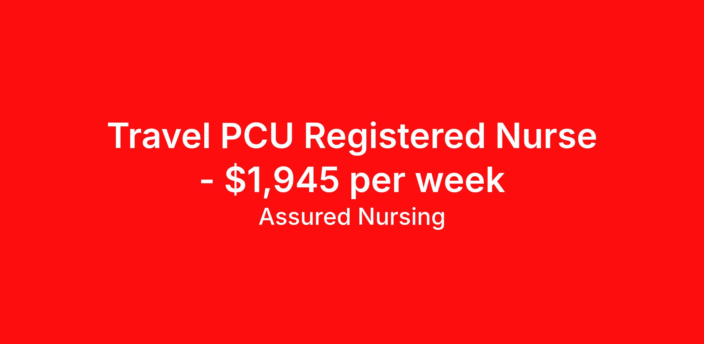 Assured Nursing is seeking a travel nurse RN PCU - Progressive Care Unit for a travel nursing job in Columbia, South Carolina. Job Description & Requirements Specialty: PCU - Progressive Care Unit Discipline: RN Start Date: 04/13/2026 Duration: 13 weeks 36 hours per week Shift: 12 hours, nights Employment Type: Travel Assured Nursing is currently seeking a RN for a contract position in Columbia South Carolina . This is a 7p-7:30a, 19:00:00-07:30:00, 12.00-3 position in the 7 East, 25015106508 . The ideal candidate will possess a current state license as a RN and have at least 2 years of recent experience as a PCU RN . Assured Nursing Job ID 36119957. Pay package is based on 12 hour shifts and 36.0 hours per week (subject to confirmation) with tax-free stipend amount to be determined. Posted job title: RN:PCU,19:00:00-07:30:00 Benefits Weekly pay Holiday Pay 401k retirement plan Referral bonus Medical benefits Dental benefits Vision benefits
