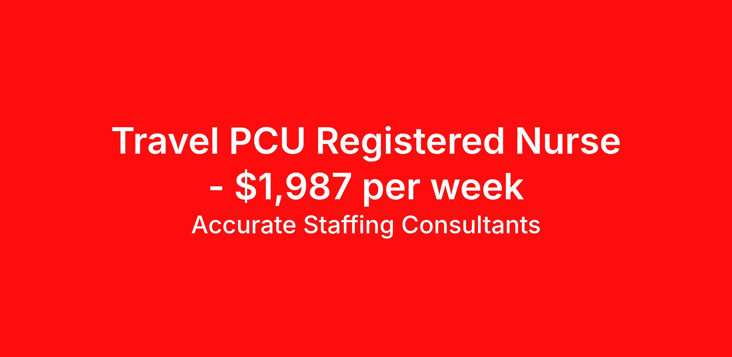 Accurate Staffing Consultants is seeking a travel nurse RN PCU - Progressive Care Unit for a travel nursing job in Columbia, South Carolina. Job Description & Requirements Specialty: PCU - Progressive Care Unit Discipline: RN Start Date: 04/13/2026 Duration: 13 weeks 36 hours per week Shift: 12 hours, nights Employment Type: Travel AccurateStaffing Job ID 4720. Pay package is based on 12 hour shifts and 36 hours per week (subject to confirmation) with tax-free stipend amount to be determined. Posted job title: RN - PCU