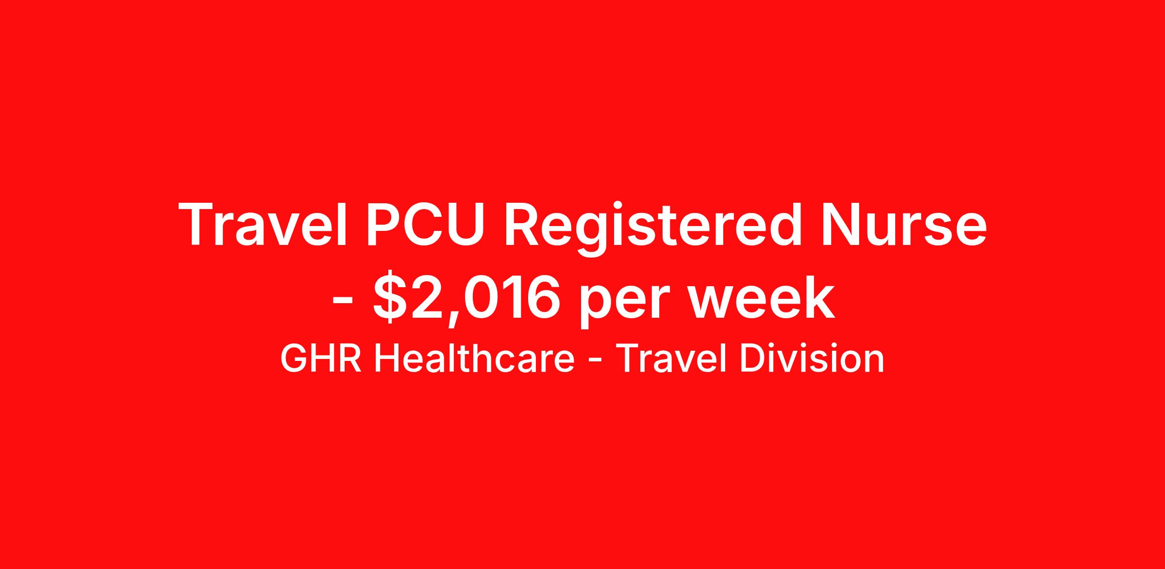 GHR Healthcare - Travel Division is seeking a travel nurse RN PCU - Progressive Care Unit for a travel nursing job in Asheville, North Carolina. Job Description & Requirements Specialty: PCU - Progressive Care Unit Discipline: RN Start Date: 03/30/2026 Duration: 13 weeks 36 hours per week Shift: 12 hours Employment Type: Travel GHR Healthcare - Travel Division Job ID 76188242. Pay package is based on 12 hour shifts and 36 hours per week (subject to confirmation) with tax-free stipend amount to be determined. About GHR Healthcare - Travel Division For over 30 years, GHR Healthcare has been the bridge between healthcare professionals and the facilities that need them nationwide. We're committed to uncovering your ideal fit, supported by GHR's dedication to competitive compensation, transparent communication, and a devoted team that genuinely cares about your career journey. You can trust us to stand by your side as your advocate, confidante, and partner in advancing your career. At GHR, care and consideration are at the heart of everything we do. Visit ghrhealthcare.com to learn more.