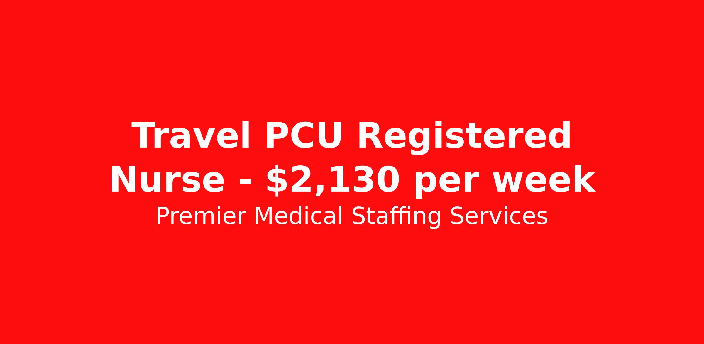 Premier Medical Staffing Services is seeking a travel nurse RN PCU - Progressive Care Unit for a travel nursing job in indianapolis, Indiana. Job Description & Requirements Specialty: PCU - Progressive Care Unit Discipline: RN Start Date: 04/06/2026 Duration: 13 weeks 36 hours per week Shift: 12 hours Employment Type: Travel Premier Medical Staffing Job ID 625253. Pay package is based on 12 hour shifts and 36 hours per week (subject to confirmation) with tax-free stipend amount to be determined. Posted job title: RN PCU About Premier Medical Staffing Services Premier Medical Staffing Services, LLC is a nationally expanding healthcare staffing firm for healthcare professionals and companies. We understand our clients’ need for highly qualified, expertly trained medical professionals and are passionate about helping clinicians find employment opportunities that fit their personality and needs. Able to accommodate the ever-changing needs of the healthcare landscape, we offer per-diem, contract and direct hire placements to support the unique needs of each industry sector. Premier Medical Staffing Services is Joint Commission Certified, a Military Spouse Employment Partner and is certified as a Women’s Business Enterprise. We are proudly nurse owned.
