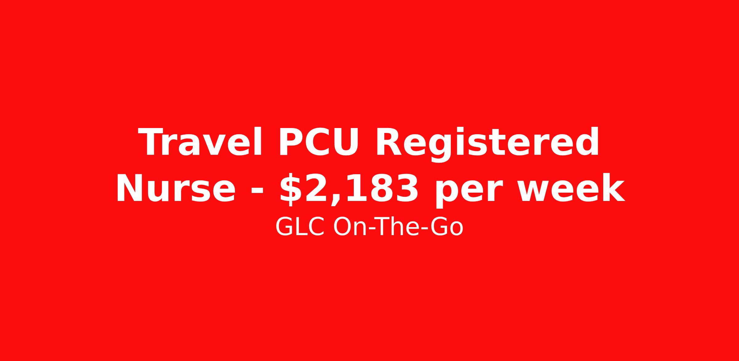 GLC On-The-Go is seeking a travel nurse RN PCU - Progressive Care Unit for a travel nursing job in Columbus, Ohio. Job Description & Requirements Specialty: PCU - Progressive Care Unit Discipline: RN Start Date: 04/20/2026 Duration: 13 weeks 36 hours per week Shift: 12 hours Employment Type: Travel GLC is hiring: RN Progressive Care Unit (PCU)/Step Down - Columbus, OH - 16-week contract GLC – Named Best Nurse Agency 2024–2025 We connect nurses, nursing professionals, and allied health professionals like you to contracts that align with your skills, schedule, and career goals. About this Assignment Join the care team in Progressive Care Unit (PCU)/Step Down where you’ll provide patient-centered care in a collaborative environment. Typical responsibilities include direct patient care, timely documentation, and coordination with the care team. Specific duties will be confirmed during your interview with a recruiter. Assignment Details Location: Columbus, OH Assignment Length: 16 weeks Start Date: 04/20/2026 End Date: 08/10/2026 Pay Range: $1,965 - $2,183 Minimum Requirements Active license in Progressive Care Unit (PCU)/Step Down 1 year full-time RN, Progressive Care Unit (PCU)/Step Down experience within the last 2 years What you can expect from GLC Weekly on-time pay with direct deposit Transparent communication, clear assignment details, and recruiter support from start to finish - or extension Referral bonus up to $500 Health, dental, and vision insurance 401(k) plan Completion and signing bonuses may also be available Ready to move forward? Apply now and start your rewarding journey with GLC - a recruiter will connect quickly to review pay , start date , and assignment details so you can make the best decision for your next contract. GLC On-The-Go Job ID 502119. Pay package is based on 12 hour shifts and 36 hours per week (subject to confirmation) with tax-free stipend amount to be determined. Posted job title: PCU Registered Nurse About GLC On-The-Go GLC is more than just a staffing agency – we’re your trusted partner in finding travel, local, and PRN contracts that align with your career aspirations and lifestyle. We specialize in connecting travel nurses and allied healthcare professionals like you with opportunities in acute care, long-term care, behavioral health, and allied fields across the U.S. Our attentive and friendly recruiters are always just a call or text away, ready to guide you at every step, ensuring you feel valued and heard. We understand the unique needs of travel healthcare professionals, which is why we offer comprehensive benefits and 24/7 support. Join GLC, where our 20 years of experience mean we know how to help you find the assignments that turn your career goals into reality. With us, it's not just a placement – it's your dream career made possible