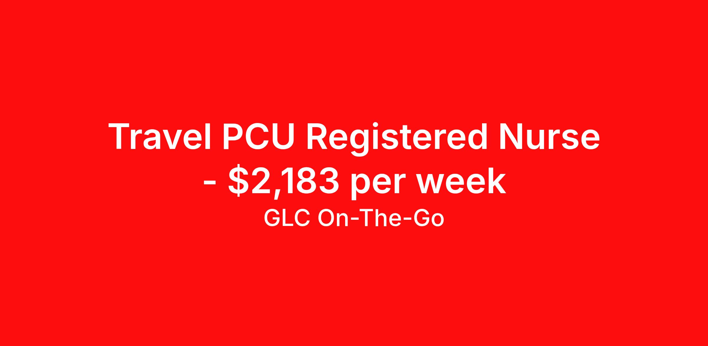 GLC On-The-Go is seeking a travel nurse RN PCU - Progressive Care Unit for a travel nursing job in Columbus, Ohio. Job Description & Requirements Specialty: PCU - Progressive Care Unit Discipline: RN Start Date: 04/20/2026 Duration: 13 weeks 36 hours per week Shift: 12 hours Employment Type: Travel GLC is hiring: RN Progressive Care Unit (PCU)/Step Down - Columbus, OH - 16-week contract GLC – Named Best Nurse Agency 2024–2025 We connect nurses, nursing professionals, and allied health professionals like you to contracts that align with your skills, schedule, and career goals. About this Assignment Join the care team in Progressive Care Unit (PCU)/Step Down where you’ll provide patient-centered care in a collaborative environment. Typical responsibilities include direct patient care, timely documentation, and coordination with the care team. Specific duties will be confirmed during your interview with a recruiter. Assignment Details Location: Columbus, OH Assignment Length: 16 weeks Start Date: 04/20/2026 End Date: 08/10/2026 Pay Range: $1,965 - $2,183 Minimum Requirements Active license in Progressive Care Unit (PCU)/Step Down 1 year full-time RN, Progressive Care Unit (PCU)/Step Down experience within the last 2 years What you can expect from GLC Weekly on-time pay with direct deposit Transparent communication, clear assignment details, and recruiter support from start to finish - or extension Referral bonus up to $500 Health, dental, and vision insurance 401(k) plan Completion and signing bonuses may also be available Ready to move forward? Apply now and start your rewarding journey with GLC - a recruiter will connect quickly to review pay , start date , and assignment details so you can make the best decision for your next contract. GLC On-The-Go Job ID 502119. Pay package is based on 12 hour shifts and 36 hours per week (subject to confirmation) with tax-free stipend amount to be determined. Posted job title: PCU Registered Nurse About GLC On-The-Go GLC is more than just a staffing agency – we’re your trusted partner in finding travel, local, and PRN contracts that align with your career aspirations and lifestyle. We specialize in connecting travel nurses and allied healthcare professionals like you with opportunities in acute care, long-term care, behavioral health, and allied fields across the U.S. Our attentive and friendly recruiters are always just a call or text away, ready to guide you at every step, ensuring you feel valued and heard. We understand the unique needs of travel healthcare professionals, which is why we offer comprehensive benefits and 24/7 support. Join GLC, where our 20 years of experience mean we know how to help you find the assignments that turn your career goals into reality. With us, it's not just a placement – it's your dream career made possible