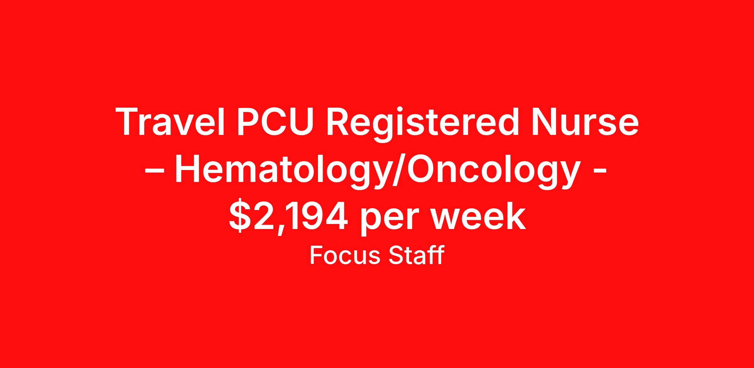 Travel PCU Registered Nurse – Hematology/Oncology - $2,194 per week