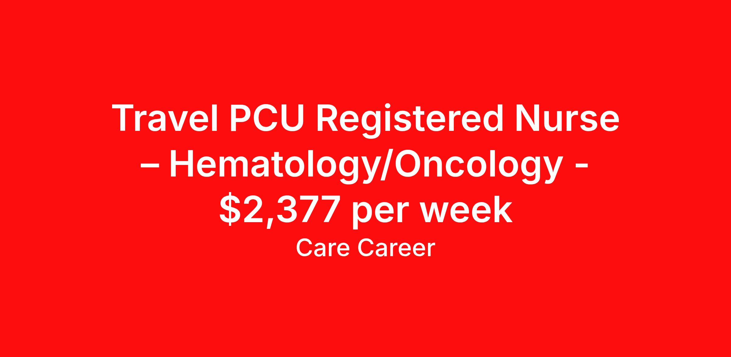 Travel PCU Registered Nurse – Hematology/Oncology - $2,377 per week