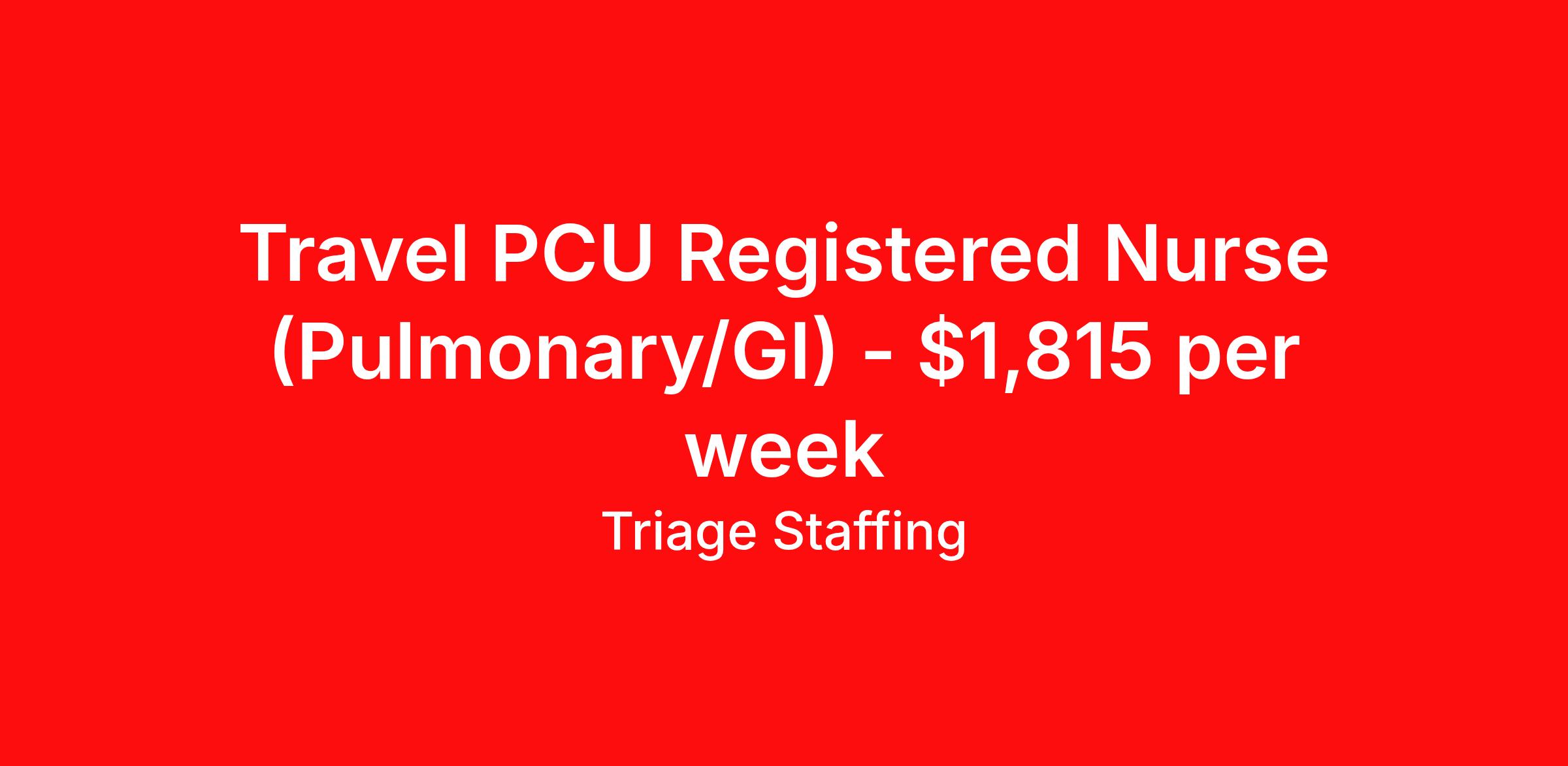Travel PCU Registered Nurse (Pulmonary/GI) - $1,815 per week