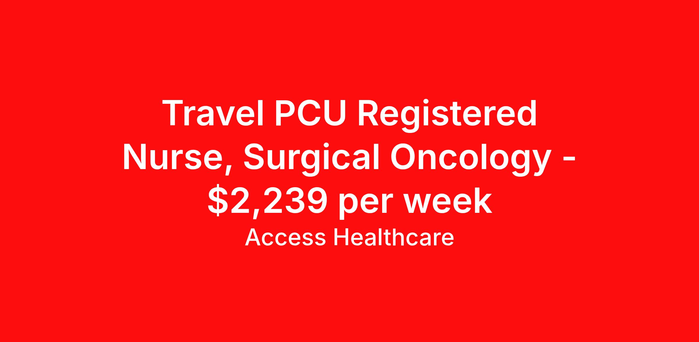 Access Healthcare is seeking a travel nurse RN PCU - Progressive Care Unit Med Surg for a travel nursing job in Columbus, Ohio. Job Description & Requirements Specialty: PCU - Progressive Care Unit Discipline: RN Start Date: 04/20/2026 Duration: 16 weeks 36 hours per week Shift: 12 hours, nights Employment Type: Travel Access Healthcare Job ID 76415597. Pay package is based on 12 hour shifts and 36 hours per week (subject to confirmation) with tax-free stipend amount to be determined. About Access Healthcare Access Healthcare aims to provide superior service to our nursing family by providing around the clock support, competitive pay packages and an unmatched benefits package! Unlike other agencies, we offer a true family feel and work with you to find the placement that is right for you. We offer one of the top leading pay packages in the industry and we are ready to get you the money you deserve! Access Healthcare was founded by two travel nurses, Danielle and Diego, who had a dream and a shared vision of creating an agency which all nurses would want to work with. Our passion has led us to where we are today as one of the top 10 agencies in our home state of New Jersey, with access to contracts in all 50 states! We encourage you to join our team and we cannot wait to get to know you!