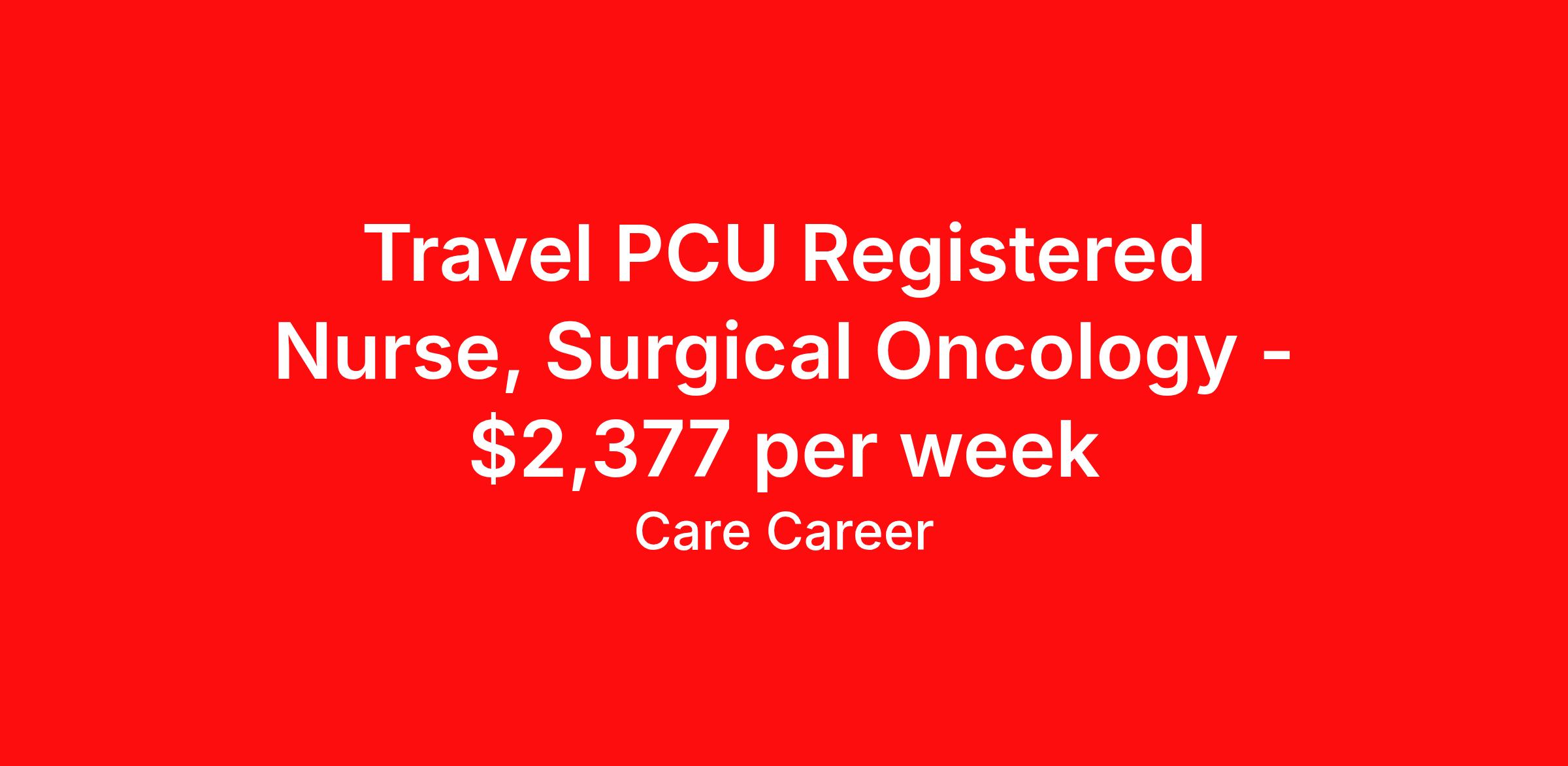 Travel PCU Registered Nurse, Surgical Oncology - $2,377 per week