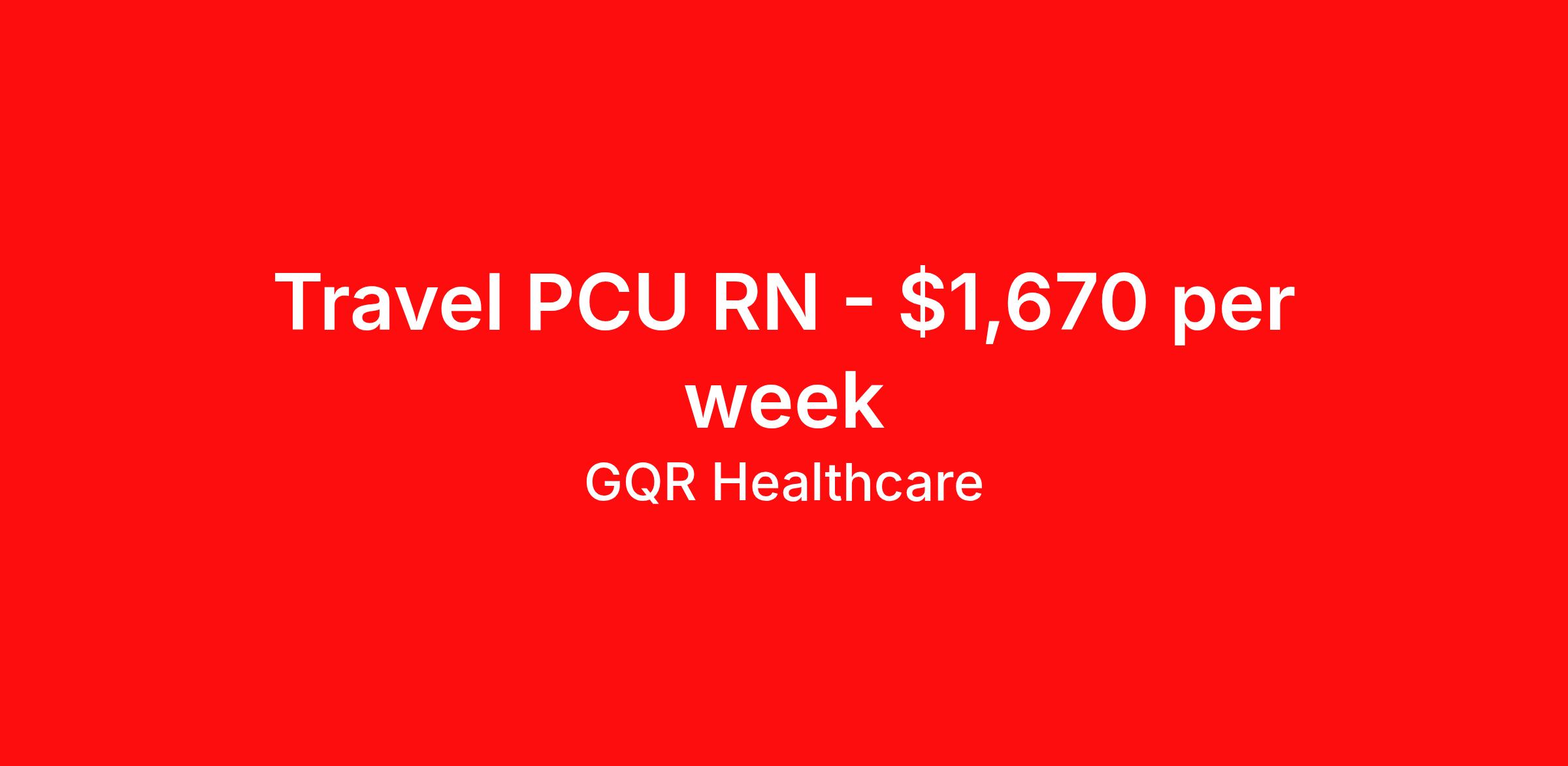 GQR Healthcare is seeking a travel nurse RN PCU - Progressive Care Unit for a travel nursing job in Asheville, North Carolina. Job Description & Requirements Specialty: PCU - Progressive Care Unit Discipline: RN Start Date: ASAP Duration: 13 weeks 36 hours per week Shift: 12 hours, nights Employment Type: Travel Progressive Care Unit RN Job Location: Asheville, NC Profession: Registered Nurse Estimated Pay: $1670.40 Duration (weeks): 13 Specialty: Progressive Care Unit Shift Details: Night *Estimated weekly pay includes projected hourly wages and weekly meal and lodging per diems for eligible clinicians based on nationally published GSA rates. Actual weekly pay and per diems may differ from the amount shown and are subject to change during an assignment. Benefits: Day 1 Insurance Cigna medical, MetLife dental and vision insurance License reimbursement for new licenses needed for each assignment Discounts with hotels and rental cars A dedicated recruiter and support team that will help you every step of the way to sure you start on time and have an exceptional experience Referral bonus up to $700 About the Company: Finding the right role is about more than just matching skills to a job—it’s about aligning with your goals, values, and the way you want to work. As an award-winning talent partner, we support healthcare professionals through every step of that process, offering meaningful opportunities, clear guidance, and long-term partnership. From our first conversation to your first day on the job (and beyond!), we’re here to help you move forward with confidence. GQR Job ID 776369. Pay package is based on 12 hour shifts and 36 hours per week (subject to confirmation) with tax-free stipend amount to be determined. Posted job title: Registered Nurse (RN) About GQR Healthcare GQR’s Healthcare team specializes in connecting experts within the industry to highly skilled healthcare professionals across the US market. In the competitive healthcare market, we recognize that the industry’s common goals of improved quality of care and patient outcomes are wholly reliant upon the professionals directly supporting these initiatives. Leveraging our extensive candidate network, we deliver continuity of care for the communities our partners serve to ensure the patient experience is of the highest quality. Through deep market specialization and a unique approach to talent acquisition, GQR Healthcare provides an unparalleled and personalized experience across all medical specialties in nursing and within diverse healthcare platforms across the industry.