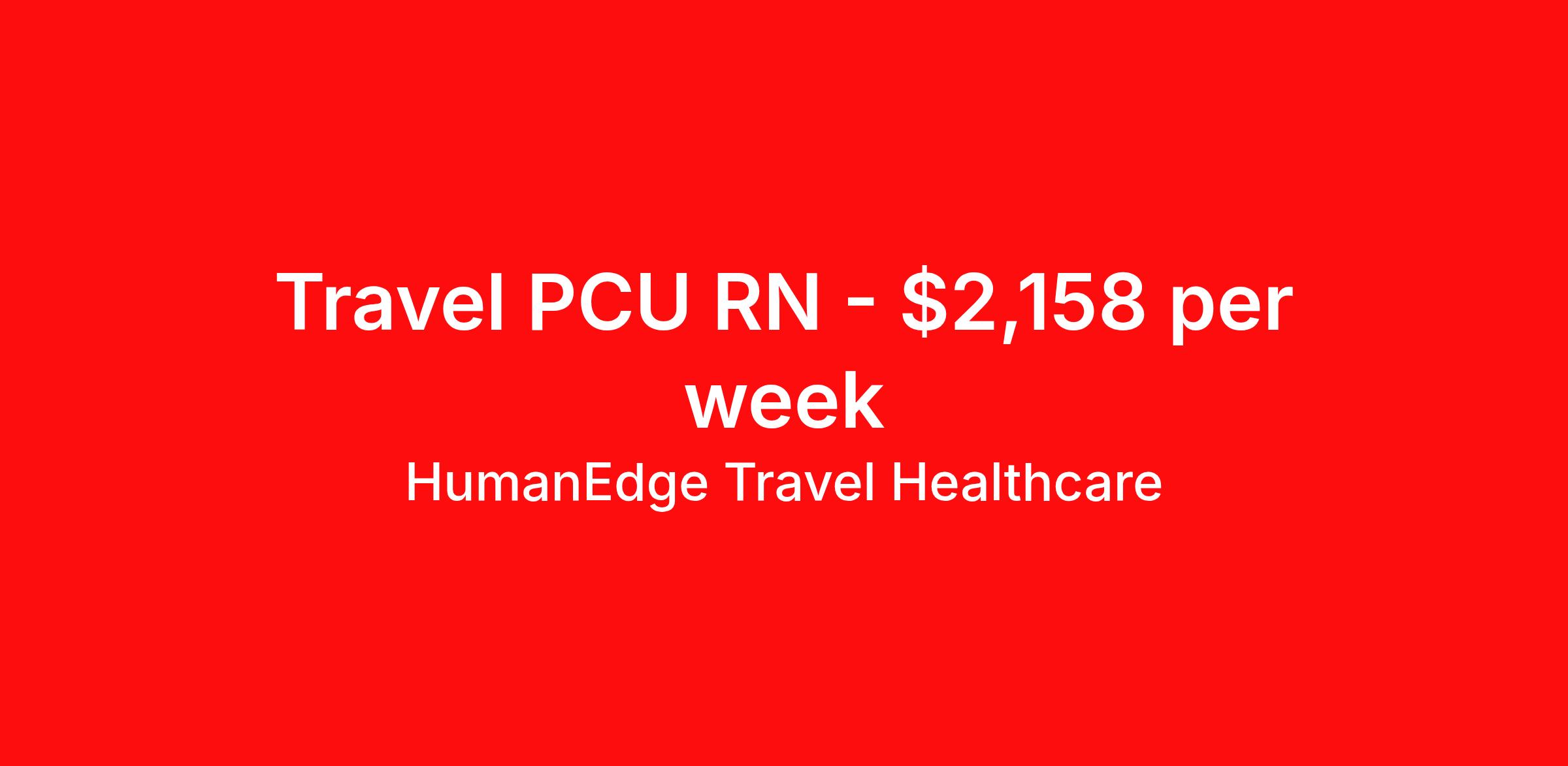 HumanEdge Travel Healthcare is seeking a travel nurse RN PCU - Progressive Care Unit for a travel nursing job in Meriden, Connecticut. Job Description & Requirements Specialty: PCU - Progressive Care Unit Discipline: RN Start Date: ASAP Duration: 13 weeks 36 hours per week Shift: 12 hours Employment Type: Travel Travel PCU RN – Meriden, CT Duration: 13 weeks Start Date: 10/6/2025 Shift: Nights, 3 x 12-hour shifts/week • 36 hours/week On-Call: No Position Summary: The Travel PCU RN provides care for patients in a step-down/progressive care setting, ensuring safe and effective nursing care. The RN may float to ICU as needed, depending on skills and manager assessment. Requirements: 2 years of Step-down or Progressive Care Unit experience preferred Epic experience strongly preferred NIHSS certification (only the 1-year certification accepted) Ability to float to Critical Care/ICU if required Responsibilities: Provide patient care according to established protocols in a PCU/Step-down unit Monitor and assess patients, implementing appropriate interventions Communicate effectively with interdisciplinary team Maintain accurate documentation in Epic Float to ICU if assigned; rate will be determined based on whether ICU float is required Shift Type: 12-hour nights Guaranteed Hours: 36/week Apply with HumanEdge Health HumanEdge Travel Healthcare Job ID 13678. Pay package is based on 12 hour shifts and 36 hours per week (subject to confirmation) with tax-free stipend amount to be determined. Posted job title: PCU RN About HumanEdge Travel Healthcare HumanEdge Allied Health is a full-service nursing and allied health staffing agency that has lived and breathed staffing for more than 30 years, making us one of the most trusted in the industry!