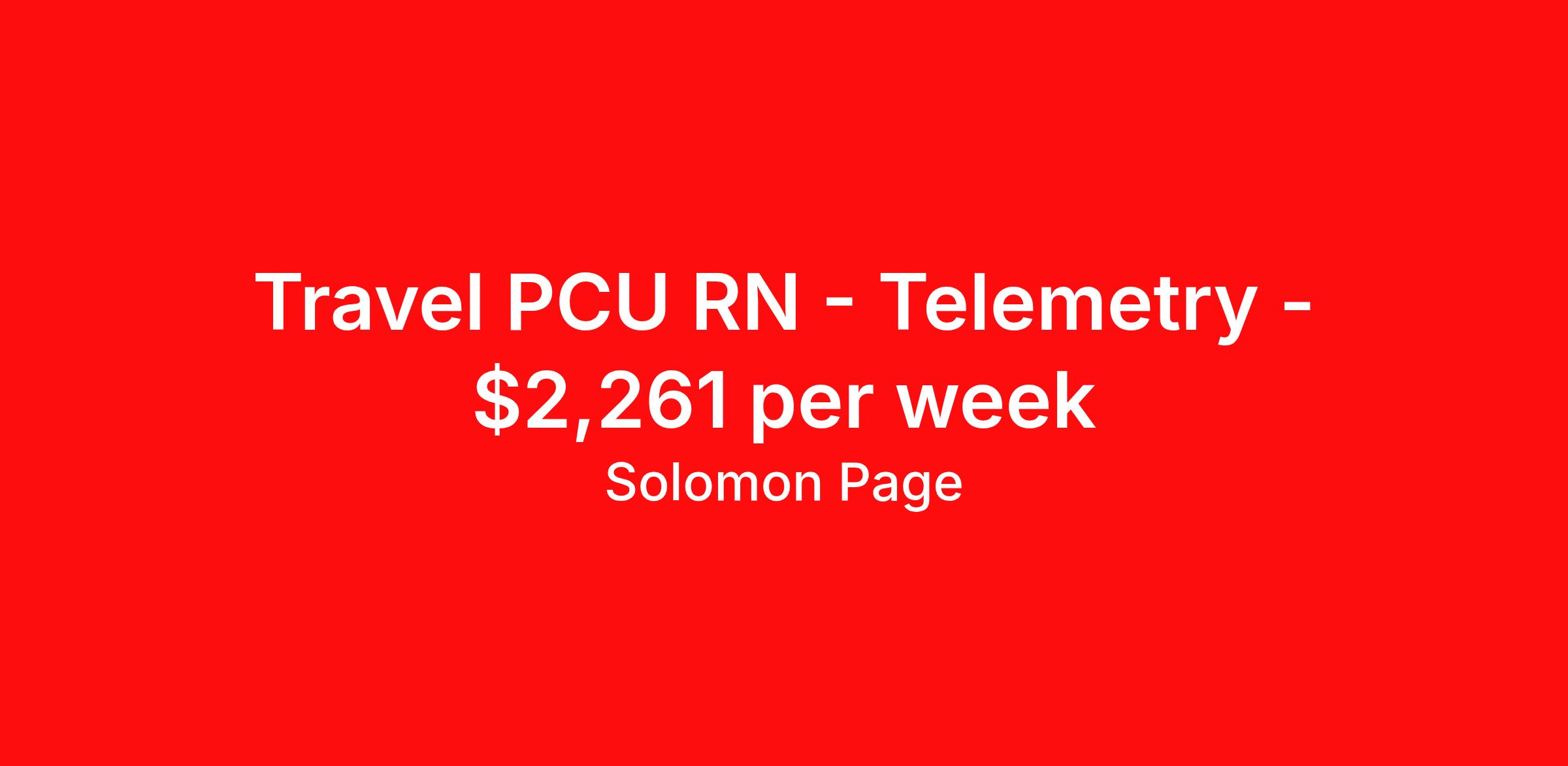 Solomon Page is seeking a travel nurse RN PCU - Progressive Care Unit for a travel nursing job in Saginaw, Michigan. Job Description & Requirements Specialty: PCU - Progressive Care Unit Discipline: RN Start Date: 04/13/2026 Duration: 13 weeks 36 hours per week Shift: 12 hours, nights Employment Type: Travel Our client is looking to add a Registered Nurse to their team. Job Details: Location: Saginaw, Michigan Duration: 13 Weeks Start Date: 04/13/2026 Shift: 3x12 Nights Qualifications: Current Michigan license Excellent interpersonal skills including patience, empathy, and compassion Effective communication skills, including active listening, writing, speaking and reading comprehension Fast and adaptive problem-solving abilities Ability to stand for long periods of time If you meet the required qualifications and are interested in this role, please apply today. Why Work with Us The success of Solomon Page is defined by our people. Offering a comprehensive benefits package, travel nurses have immediate access to medical coverage and ReviveHealth virtual care. Additionally, you are offered access to dental and vision coverage, commuter benefits, a 401(k) plan, flexible spending, referral bonuses, ongoing training, and more. As an ESOP company, Solomon Page offers an employee stock ownership plan to all consultants. As a member of our traveler community, you will join a nurturing culture that fosters your career goals. Solomon Page can connect you with your next opportunity – whether it is in your hometown, or you are looking to travel to a new destination. About Solomon Page Healthcare & Medical Staffing Accredited by the Joint Commission with the Gold Seal of Approval, Solomon Page prides ourselves in developing long-term relationships with healthcare providers based on trust and respect. Our experienced Healthcare and Medical Staffing experts are committed to providing safe and quality patient care through our wide network of travel nurses, locum tenens, and allied resources. For more information and additional healthcare opportunities, visit: solomonpage.com and connect with Solomon Page on Instagram, Facebook, Twitter, LinkedIn, and TikTok. 423634 Solomon Page Job ID 423634. Pay package is based on 12 hour shifts and 36 hours per week (subject to confirmation) with tax-free stipend amount to be determined. Posted job title: nurse - rn - pcu | saginaw, michigan About Solomon Page Founded in 1990, Solomon Page has grown to be a leader in the staffing industry. As a member of our healthcare provider community, you will join a nurturing culture that fosters your career goals. We have the network and resources to connect you with your next opportunity – whether it is in your hometown, or you are looking to travel to a new destination. Accredited by the Joint Commission with the Gold Seal of Approval, Solomon Page prides itself in developing long-term relationships with healthcare providers based on trust and respect. Headquartered in New York with offices throughout the United States our experienced healthcare and medical staffing experts are committed to providing safe and quality patient care through our wide network of travel nurses, locum tenens, and allied resources. For more information and additional healthcare opportunities, visit: solomonpage.com /healthcare and connect with us on Facebook , Twitter , Instagram , Tik Tok , and LinkedIn. ReviveHealth Virtual Care: Available immediately. Receive free, 100% company paid, virtual care access. Upon commencement of your employment, Solomon Page offers automatic enrollment into ReviveHealth, which offers concierge, membership-based access to virtual primary care, urgent care, mental health therapy, a vision program, and prescription medications. Medical Coverage : Available immediately . Whether you are looking to enroll in single or family insurance, you have immediate access to quality coverage. Dental Coverage : Available the 1st of the month after your hire date . We offer dental insurance to you and your dependents. Vision Coverage : Available the 1st of the month after your hire date . We offer vision insurance to you and your dependents. Commuter Benefits: Available the 1st of the month after your hire date . Set aside pre-tax money to pay for public transportation. 401K Plan: Associates can enroll in the 401K plan after they have worked 1000 hours. ESOP Benefits: As an ESOP company, Solomon Page offers an employee stock ownership plan. Referral Bonus: A cash bonus is offered for referring a candidate to Solomon Page who gets placed. Training & Support: Training programs and ongoing career coaching and support is offered to consultants. Benefits Medical benefits Dental benefits Vision benefits 401k retirement plan Referral bonus