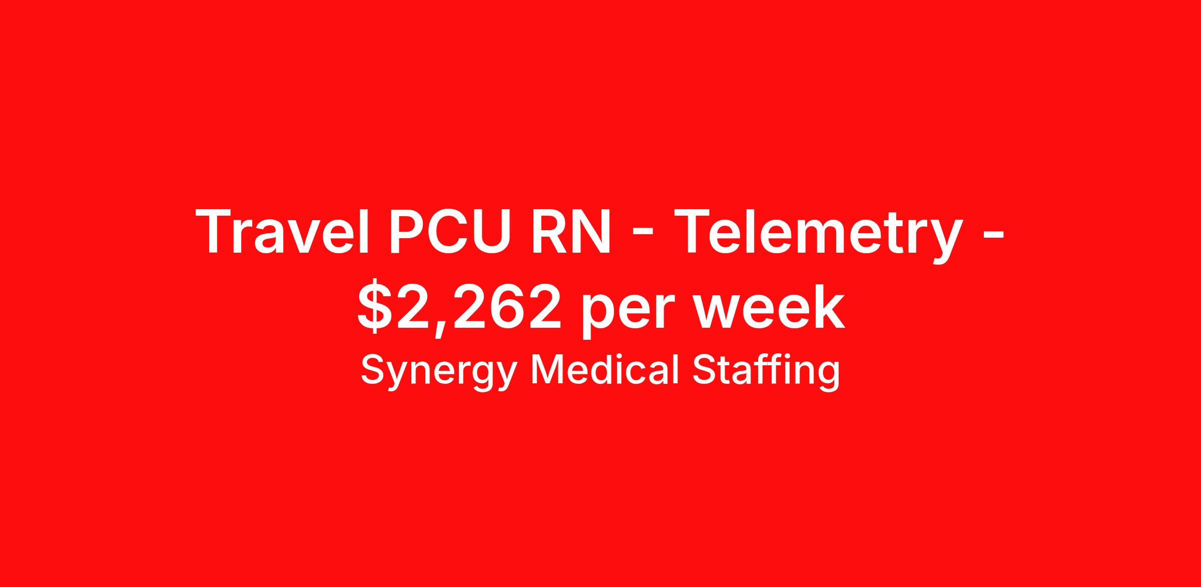Synergy Medical Staffing is seeking a travel nurse RN PCU - Progressive Care Unit for a travel nursing job in Saginaw, Michigan. Job Description & Requirements Specialty: PCU - Progressive Care Unit Discipline: RN Start Date: 04/13/2026 Duration: 13 weeks 36 hours per week Shift: 12 hours, nights Employment Type: Travel Travel, RN - PCU Location: Saginaw, Michigan Shift: 3X12 Nights, 19:00:00-07:00:00, 12.00-3 Duration 13 Weeks When you join Synergy Medical Staffing, you’ll have a dedicated recruiter helping you at all times. Your recruiter is a cross between a career coach and a concierge. They will help you fine-tune your resume, find your next job, and locate an apartment (even one that takes pets!). Make one call and get help with everything from placement to housing to payroll, even travel directions! As a travel, contract and permanent placement medical staffing company with over 20 years of experience in the industry, we understand your needs. Synergy’s Benefits are best in class and include the following: 401K that matches up to 5% of your pay and you are 100% vested from Day 1. Medical, Dental, Vision, Life insurance, Long and short-term disability and others Loyality Program Weekly pay Holiday Pay (varies by Assignment) Guaranteed Hours (varies by Assignment) Referral bonus Continuing Education License and certification reimbursement Synergy Medical Staffing Job ID 35857661. Pay package is based on 12 hour shifts and 36.0 hours per week (subject to confirmation) with tax-free stipend amount to be determined. Posted job title: RN:PCU,19:00:00-07:00:00 About Synergy Medical Staffing When you join Synergy Medical Staffing, you’ll have a dedicated recruiter helping you at all times. Your recruiter is a cross between a career coach and a concierge. They will help you fine-tune your resume, find your next job, and locate an apartment (even one that takes pets!). Make one call and get help with everything from placement to housing to payroll, even travel directions! As a travel, contract and permanent placement medical staffing company with over 12 years of experience in the industry, we understand your needs. Are you interested in traveling, or just a job around the corner? Whatever your preference, you can be sure there are plenty of Nursing Jobs, Allied Jobs and Physical Therapy Jobs, Occupational Therapy Jobs, Speech Therapy Jobs and Rehab Therapy jobs anywhere you want to go. Synergy Medical Staffing professionals have been in the Medical staffing employment and staffing industry for over 12 years, and have developed solid relationships with numerous healthcare facilities nationwide. Contact us now and expand your medical career with new opportunities from Synergy Medical Staffing. Synergy’s Benefits are best in class and include the following 401K Day 1 Full Medical, Dental, Vision, Life insurance, Long and short term disability and others Student Loan Repayment and CEU reimbursement Loyalty bonus after 600 hours Benefits Discount program Weekly pay Holiday Pay Guaranteed Hours Referral bonus Medical benefits Dental benefits Continuing Education License and certification reimbursement Life insurance 401k retirement plan Cancelation protection Vision benefits