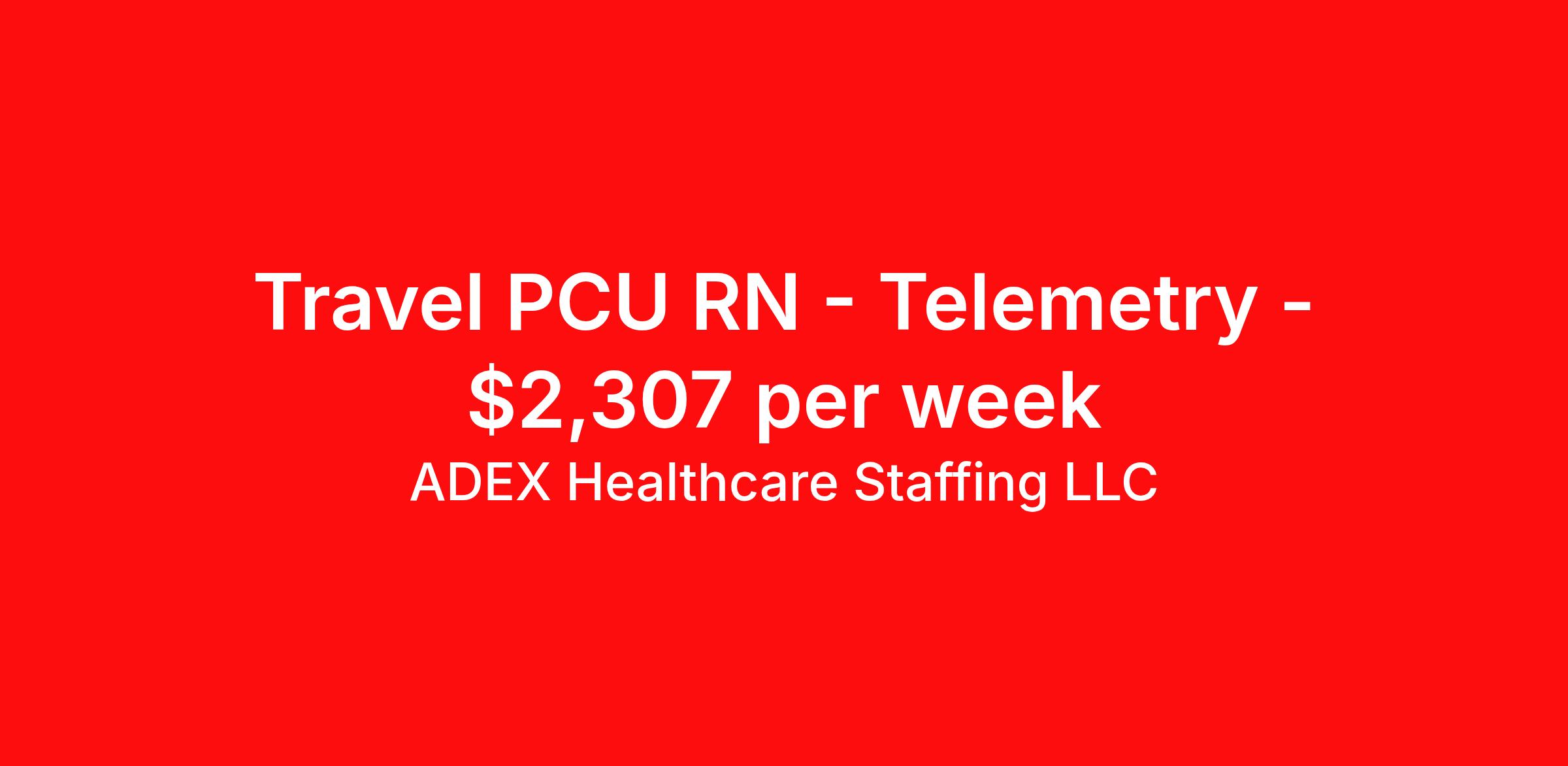ADEX Healthcare Staffing LLC is seeking a travel nurse RN PCU - Progressive Care Unit for a travel nursing job in Saginaw, Michigan. Job Description & Requirements Specialty: PCU - Progressive Care Unit Discipline: RN Start Date: 04/13/2026 Duration: 13 weeks 24 hours per week Shift: 8 hours, nights Employment Type: Travel RN Position Job Notes: Travel or Local Registered Nurse needed for ASAP start. A minimum of 2 years of recent hospital bedside experience is required. Candidates must be able to start within 5 weeks. Opportunity for extension upon successful completion of the initial assignment. $750 referral bonus available. Opportunity: RN - PCU Job Details: • Work every other weekend and holidays • No on-call responsibilities • 2 years of nursing experience required • Telemetry cardiac experience required • Recent traveler experience highly preferred • Required certifications: ACLS (AHA), BLS (AHA) • Active Michigan nursing license required with LARA and/or Nursys verification • Skills checklist pertinent to telemetry specialty required (current within 1 year) • Two supervisory reference forms completed within the last two years required • Assess patients for physical, emotional, psychological/social and family support needs • Organize and coordinate all aspects of patient care according to patient's real and/or perceived needs • Evaluate patient progress by correlating patient information with nursing knowledge • Consult and collaborate with healthcare team members in planning and implementing total patient care • Apply broad nursing knowledge using the nursing process in a caring, concerned manner • All scheduling requests must be made at time of submission • Facility considers local candidates within 50-mile radius for one 13-week contract only Facility: This healthcare organization operates a progressive care unit that provides intermediate-level care for patients who require more monitoring than general medical-surgical floors but less intensive care than ICU settings. The facility emphasizes integrated patient care using evidence-based nursing practices and collaborative healthcare team approaches. The organization maintains high standards for nursing excellence and provides comprehensive care coordination for patients with complex medical needs. Location: Saginaw, MI Saginaw offers a rich industrial heritage and affordable living in central Michigan, with access to numerous outdoor recreation opportunities along the Saginaw River and nearby lakes. The area provides a strong sense of community with cultural attractions, local festivals, and convenient access to larger metropolitan areas like Detroit and Grand Rapids. Adex Job ID 65163. Pay package is based on 8 hour shifts and 24 hours per week (subject to confirmation) with tax-free stipend amount to be determined. About ADEX Healthcare Staffing LLC ADEX has been placing healthcare professionals across the US since 2004. Originally founded in Atlanta, GA, the company's headquarters are now located in Tampa, FL. JCAHO certified since 2009. Benefits Referral bonus