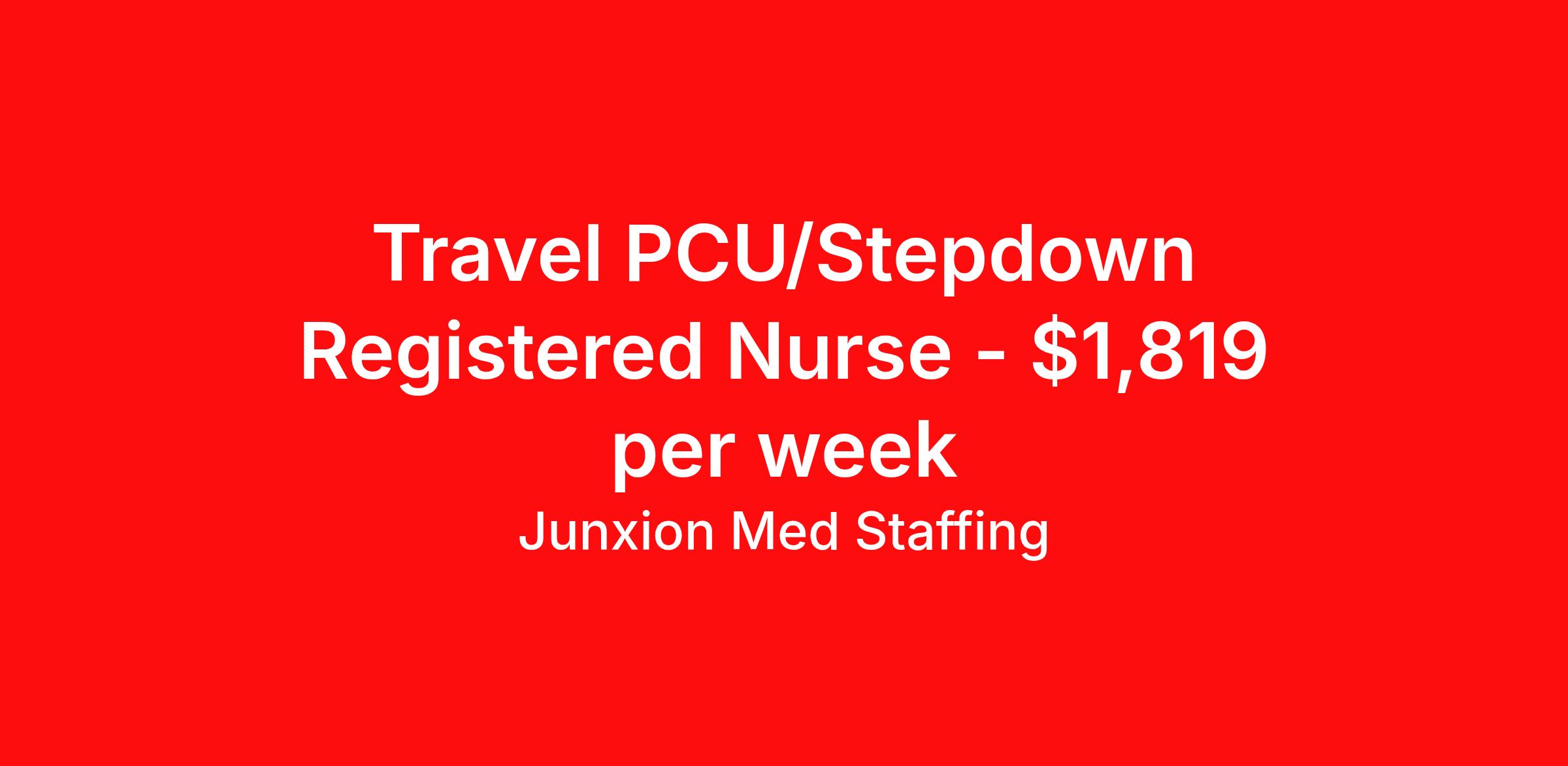 Junxion Med Staffing is seeking a travel nurse RN PCU - Progressive Care Unit for a travel nursing job in Lafayette, Indiana. Job Description & Requirements Specialty: PCU - Progressive Care Unit Discipline: RN Start Date: 04/07/2026 Duration: 13 weeks 36 hours per week Shift: 12 hours, days Employment Type: Travel Summary: Junxion Med Staffing is looking for a PCU/Stepdown RN to take an assignment in Lafayette, Indiana. This assignment lasts 13.14 WEEKS and is scheduled to start on April 7, 2026. If you don't like the start date, pay, or shift, then let’s talk. Give us a call opt 1 Job Details: Shift: 12H Days Total Weekly Hours: 36 Certifications: BLS, ACLS, BLS, NIHSS Trauma Level: Benefits: Day 1 Insurance Additional bonus potential for every contract Additional vacation incentives Medical insurance with no more than $175 monthly premium for employee Employee Assistance Program (EAP) Referral bonus up to $1,000 401K and access to financial advisors for financial wellness and education A dedicated recruiter and support team that will help you every step of the way to sure you start on time and have an exceptional experience An agency ran by a traveler for travelers Click here for licensing requirements About the Company: Junxion Med Staffing is an award-winning healthcare staffing company with a mission to provide quality healthcare to our communities. Apply today to speak with a recruiter! Awards: RNVIP- Top 10 Travel Nursing Agencies of 2024 BluePipes – The Best Travel Nursing Companies 2023 *Estimated weekly pay includes projected hourly wages and weekly meal and lodging per diems for eligible clinicians based on nationally published GSA rates. Actual weekly pay and per diems may differ from the amount shown and may be subject to change during an assignment. For all employees and employee applicants, Junxion Med Staffing is an Equal Employment Opportunity ("EEO") Employer, including Disability/Vets, and welcomes all to apply. Junxion Med Staffing Job ID 1363272. Pay package is based on 12 hour shifts and 36 hours per week (subject to confirmation) with tax-free stipend amount to be determined. About Junxion Med Staffing Junxion Med Staffing was founded by a former healthcare traveler who understands the challenges healthcare professionals face - because we’ve been there. We specialize in placing travel nurses, allied health professionals, physicians, physician assistants, and nurse practitioners in both short-term and permanent roles across a wide range of specialties. Whether you're looking for a travel contract or a long-term fit, we work to ensure the right match between each healthcare professional and facility. At Junxion, we keep it simple: ● Transparent communication. No surprises, no hidden details, just honest conversations so you always know what to expect. ● Dedicated support. From job search to contract negotiations and throughout your assignment, you’ll have a recruiter who’s with you every step of the way. ● Competitive pay and benefits. We advocate for you to be fairly compensated and supported in your goals. ● A focus on your success. When healthcare professionals feel valued and empowered, patient care improves and that’s what it’s all about. You’re not just a number here. You’re part of a team that actually cares. Let’s find your next great opportunity together. Benefits Weekly pay Referral bonus Dental benefits Vision benefits 401k retirement plan Medical benefits Mileage reimbursement