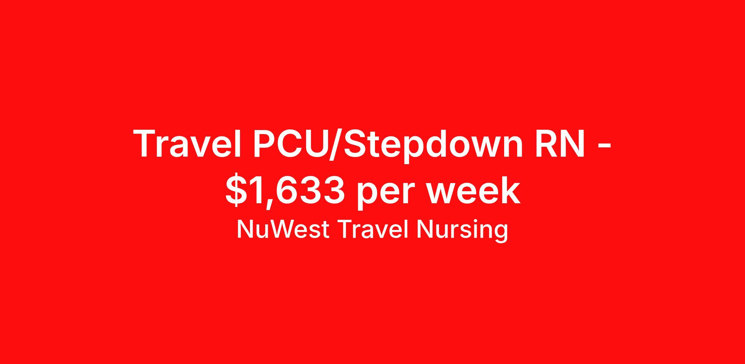 NuWest Travel Nursing is seeking a travel nurse RN PCU - Progressive Care Unit for a travel nursing job in Chattanooga, Tennessee. Job Description & Requirements Specialty: PCU - Progressive Care Unit Discipline: RN Duration: 13 weeks 36 hours per week Shift: 12 hours Employment Type: Travel We have a new assignment for RN - PCU/Stepdown in Chattanooga, TN and are interviewing ASAP. This is a travel assignment, 3x12 Nights position at a great facility. Pay Range: $1500.29 - $1765.04 Per Week Benefits include medical, dental, vision, 401K, weekly direct deposit, and more! NuWest Travel Nursing Job ID 242460. Pay package is based on 12 hour shifts and 36 hours per week (subject to confirmation) with tax-free stipend amount to be determined.