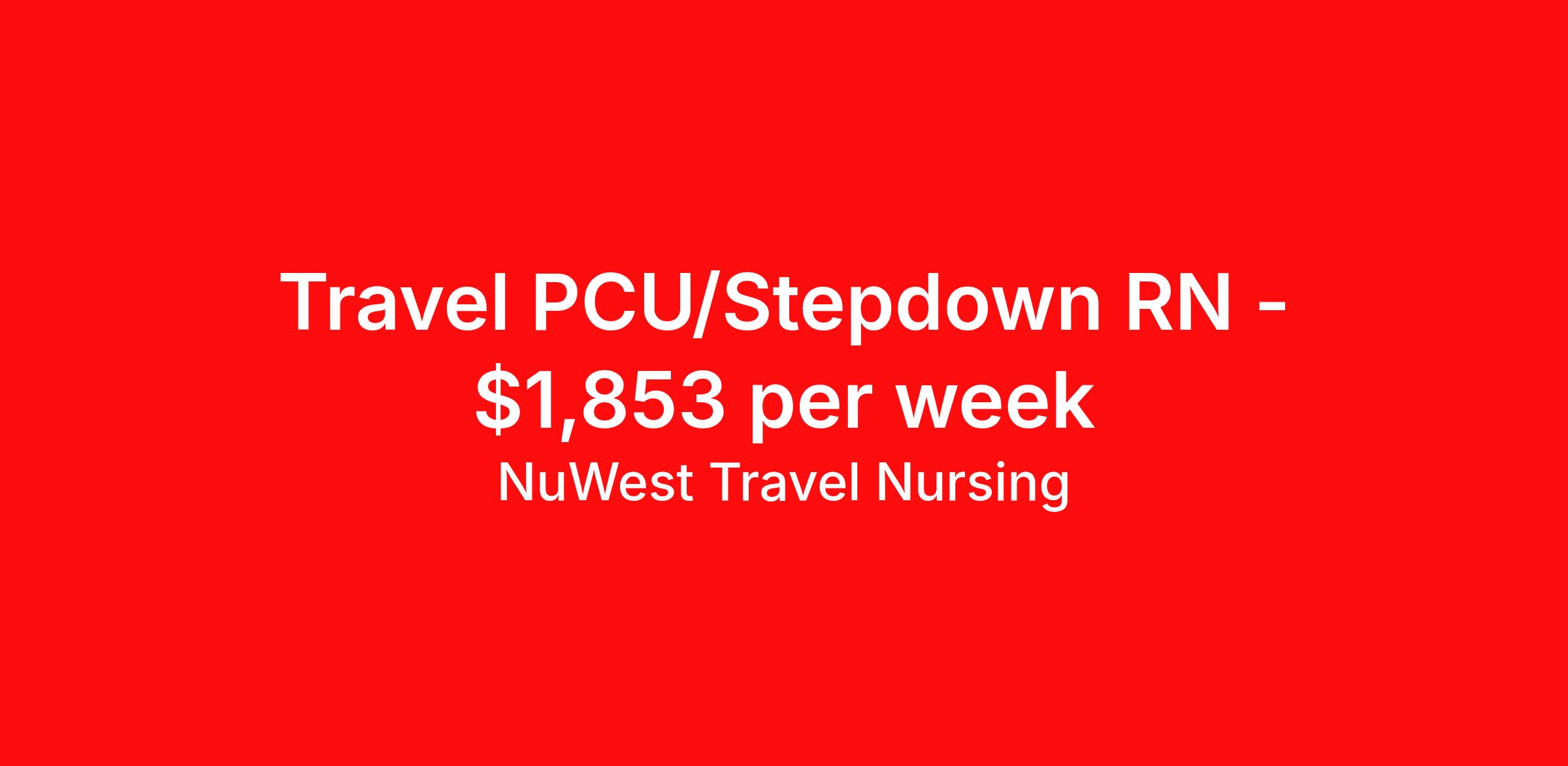 NuWest Travel Nursing is seeking a travel nurse RN PCU - Progressive Care Unit for a travel nursing job in Newton, Massachusetts. Job Description & Requirements Specialty: PCU - Progressive Care Unit Discipline: RN Duration: 13 weeks 36 hours per week Shift: 12 hours Employment Type: Travel We have a new assignment for RN - PCU/Stepdown in Newton, MA and are interviewing ASAP. This is a travel assignment, 3x12 Nights position at a great facility. Pay Range: $1703.1 - $2003.65 Per Week Benefits include medical, dental, vision, 401K, weekly direct deposit, and more! NuWest Travel Nursing Job ID 269132. Pay package is based on 12 hour shifts and 36 hours per week (subject to confirmation) with tax-free stipend amount to be determined.