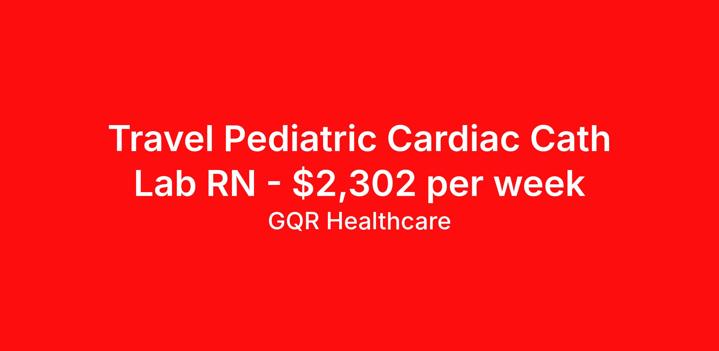 GQR Healthcare is seeking a travel nurse RN Pediatric Cardiac Cath Lab for a travel nursing job in Portland, Oregon. Job Description & Requirements Specialty: Pediatric Cardiac Cath Lab Discipline: RN Start Date: 03/30/2026 Duration: 13 weeks 36 hours per week Shift: 12 hours, days Employment Type: Travel Contract - W2 Cath Lab Registered Nurse (RN) Job Location: Portland, Oregon Start Date: March 30, 2026 Profession: Registered Nurse (RN) Facility: Hospital Estimated Pay: $2301.72 - $2396.72 Duration:13 weeks Specialty:Cath Lab Shift: Day Shift Details: null Day Job Type: Travel *Estimated weekly pay includes projected hourly wages and weekly meal and lodging per diems for eligible clinicians based on nationally published GSA rates. Actual weekly pay and per diems may differ from the amount shown and are subject to change during an assignment. Benefits: Day 1 Insurance Cigna medical, MetLife dental and vision insurance License reimbursement for new licenses needed for each assignment Discounts with hotels and rental cars A dedicated recruiter and support team that will help you every step of the way to sure you start on time and have an exceptional experience Referral bonus up to $700 About the Company: Finding the right role is about more than just matching skills to a job—it’s about aligning with your goals, values, and the way you want to work. As an award-winning talent partner, we support healthcare professionals through every step of that process, offering meaningful opportunities, clear guidance, and long-term partnership. From our first conversation to your first day on the job (and beyond!), we’re here to help you move forward with confidence. GQR Job ID 787539. Pay package is based on 12 hour shifts and 36 hours per week (subject to confirmation) with tax-free stipend amount to be determined. Posted job title: Registered Nurse (RN) About GQR Healthcare GQR’s Healthcare team specializes in connecting experts within the industry to highly skilled healthcare professionals across the US market. In the competitive healthcare market, we recognize that the industry’s common goals of improved quality of care and patient outcomes are wholly reliant upon the professionals directly supporting these initiatives. Leveraging our extensive candidate network, we deliver continuity of care for the communities our partners serve to ensure the patient experience is of the highest quality. Through deep market specialization and a unique approach to talent acquisition, GQR Healthcare provides an unparalleled and personalized experience across all medical specialties in nursing and within diverse healthcare platforms across the industry.