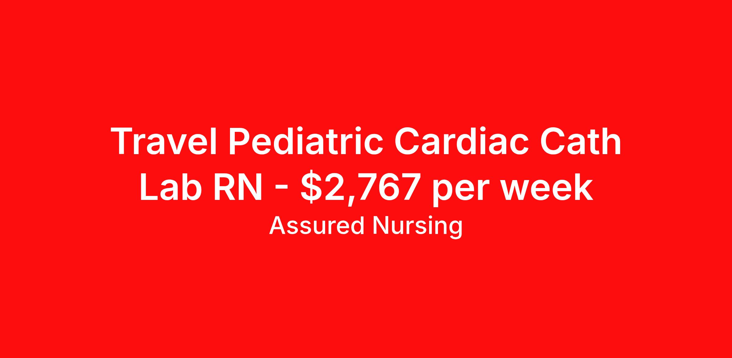 Assured Nursing is seeking a travel nurse RN Pediatric Cardiac Cath Lab for a travel nursing job in Portland, Oregon. Job Description & Requirements Specialty: Pediatric Cardiac Cath Lab Discipline: RN Start Date: 04/06/2026 Duration: 13 weeks 40 hours per week Shift: 10 hours, days Employment Type: Travel Assured Nursing is currently seeking a RN for a contract position in Portland Oregon . This is a 6a-4p, 06:00:00-16:00:00, 10.00-4 position in the 32607001 - 32607 - HC.DCH OR Management . The ideal candidate will possess a current state license as a RN and have at least 2 years of recent experience as a Cath Lab RN . Assured Nursing Job ID 36119966. Pay package is based on 10 hour shifts and 40.0 hours per week (subject to confirmation) with tax-free stipend amount to be determined. Posted job title: RN:Cath Lab,06:00:00-16:00:00 Benefits Weekly pay Holiday Pay 401k retirement plan Referral bonus Medical benefits Dental benefits Vision benefits