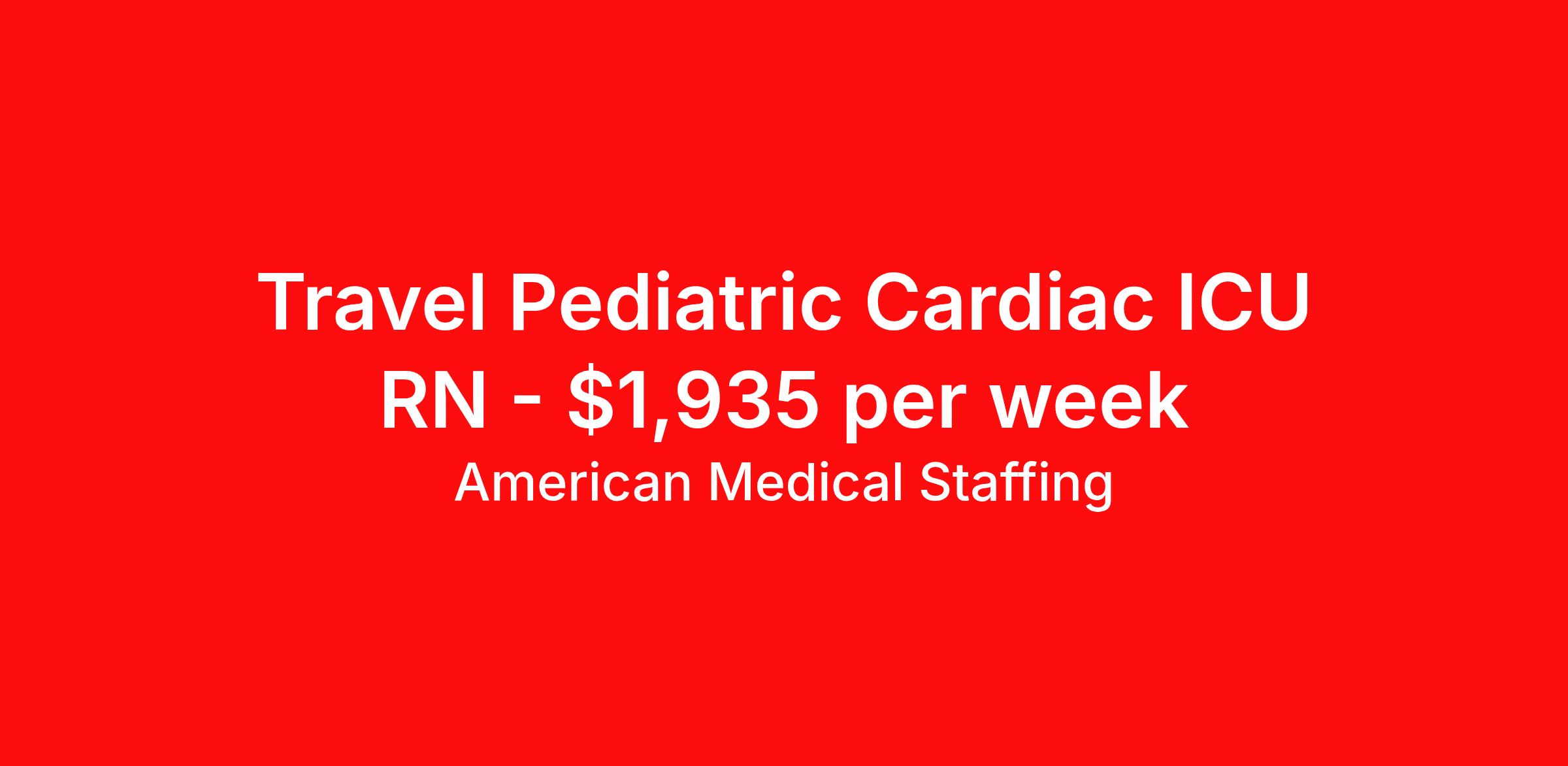 American Medical Staffing is seeking a travel nurse RN Pediatrics CVICU for a travel nursing job in Charleston, South Carolina. Job Description & Requirements Specialty: Pediatrics CVICU Discipline: RN Start Date: 04/13/2026 Duration: 13 weeks 36 hours per week Shift: 12 hours, nights Employment Type: Travel We’re living in the new normal. Lives and careers look different today. So why shouldn’t you have a role that delivers excitement, fewer restrictions, and brings you closer to loved ones? At American Medical Staffing (AMS), we believe in supporting the pioneers who embody the sense of adventure each new placement brings and we’re looking for a RN: PICU for our Hospital contract assignment. Job Title : RN: PICU Location : Charleston, South Carolina Pay Range : Competitive, Negotiable, with Weekly Pay Schedule : 12-Hour Nights, 19:00:00-07:00:00, 12.00-3 Contract Length : 13 Weeks Requirements : · 2 years of experience as a RN · Qualified applicants MUST have at least 2 years of experience in the PICU · Valid RN license · Be willing to obtain South Carolina licensure Why Choose American Medical Staffing? · Day-One Benefits : Medical, dental, and vision plans with no waiting period. · Wellness PTO : Build 1 or 2 weeks of paid time off into your contract. · Hotel Discounts : Save up to 60% on hotel bookings with access to 700,000 discounted properties. · Loyalty Program : Earn financial incentives automatically based on hours worked and assignment type. · Referral Program : $500 for you and $500 for each referral after 450 hours—no limits. · Working Advantage : Access exclusive discounts on retail, entertainment, and travel. · Scrub Discount : 20% off all scrubs through our customized AMS store. · Retirement Plans : 401(k) options to help you plan for the future. · Compliance & Credentialing Support : Let us handle the logistics so you can focus on patient care. Responsibilities · Deliver specialized care to patients across a variety of acute and subacute units. · Work closely with a multidisciplinary team of healthcare professionals to provide comprehensive and compassionate care. · Monitor patient conditions, administer treatments and document outcomes. · Advocate for the best possible patient experience while supporting recovery, safety, and continuity of care. Apply now to take the next step in your journey. American Medical Staffing is an Equal Employment Opportunity Employer and does not discriminate on the basis of race, color, religion, sex, national origin, sexual orientation, gender identity, disability, age, or any other non-merit factor. American Medical Staffing Job ID 105646. Pay package is based on 12 hour shifts and 36.0 hours per week (subject to confirmation) with tax-free stipend amount to be determined. Posted job title: RN:PICU,19:00:00-07:00:00 About American Medical Staffing American Medical Staffing is a staffing agency headquartered in Baltimore, MD. Our goal is to CREATE an extraordinary experience for our health care professionals. Our roots are nurse owned and operated so we know what clinicians want - lots of options, a smooth and informed placement process, competitive and accurate pay, great customer service and responsiveness to requests, and advocacy when there is an issue. When AMS was founded in 2001, we started our company with a mission to be a better agency than our competitors. We have always put a heavy emphasis into what is best for our employees, not necessarily just our clients or our company. You are not an expense as you may be to a hospital; you are an asset. We take employee advocacy seriously; you are not just a number to us. The end result is that you don`t work for us; we work for you. Since starting in Baltimore, MD, we continue to grow throughout the country. Check out our industry leading reviews on Google and Indeed to see how much our clinicians enjoy working with us! · Benefits: AMS offers an array of benefits for any employee working 30 hours or more! Those eligible employees who choose to participate will pay the premiums with deductions from their pre-tax earnings. We offer a complete benefits package including Health Insurance, 401K with up to 2% match, Life, Vision, and Dental. From health and wellness support, financial or legal needs, or help with life's everyday challenges, our Employee Assistance Program provides you with resources, services and discounts to help you manage your unique concerns and save time, energy and money. We also offer additional Employee Perks that you can enjoy as an AMS employee: Scrubin – Uniform Discounts Working Advantage – unlimited access to thousands of exclusive discounts and special offers nationwide for theme parks, shows, tours, attractions, sports, concerts, hotels, rental cars, retail gift cards, movie tickets and much more Hotel Engine - Save up to 60% when booking hotel rooms, with access to more than 700,000 deeply discounted hotels worldwide. Discounted Pet Insurance Wellness Program, including fitness, nutrition and financial wellness Betterhelp - 1 month of free therapy, followed by a discounted rate for our Healthcare Professionals and their family members. Win Win Referral Bonus - $500 for you, and $500 for them! Benefits 401k retirement plan Life insurance Medical benefits Dental benefits Vision benefits