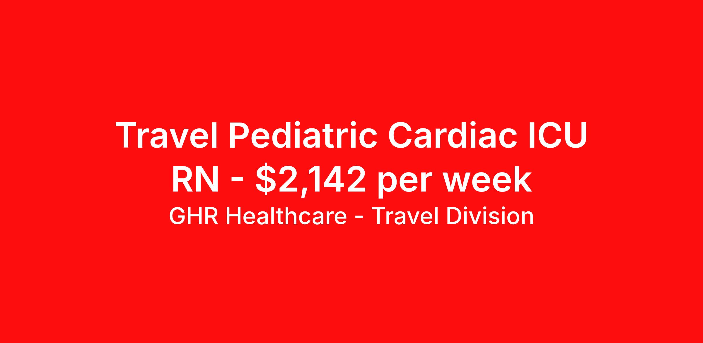 GHR Healthcare - Travel Division is seeking a travel nurse RN PICU - Pediatric Intensive Care for a travel nursing job in Cleveland, Ohio. Job Description & Requirements Specialty: PICU - Pediatric Intensive Care Discipline: RN Start Date: 04/26/2026 Duration: 13 weeks 36 hours per week Shift: 12 hours Employment Type: Travel GHR Healthcare - Travel Division Job ID 75196630. Pay package is based on 12 hour shifts and 36 hours per week (subject to confirmation) with tax-free stipend amount to be determined. About GHR Healthcare - Travel Division For over 30 years, GHR Healthcare has been the bridge between healthcare professionals and the facilities that need them nationwide. We're committed to uncovering your ideal fit, supported by GHR's dedication to competitive compensation, transparent communication, and a devoted team that genuinely cares about your career journey. You can trust us to stand by your side as your advocate, confidante, and partner in advancing your career. At GHR, care and consideration are at the heart of everything we do. Visit ghrhealthcare.com to learn more.