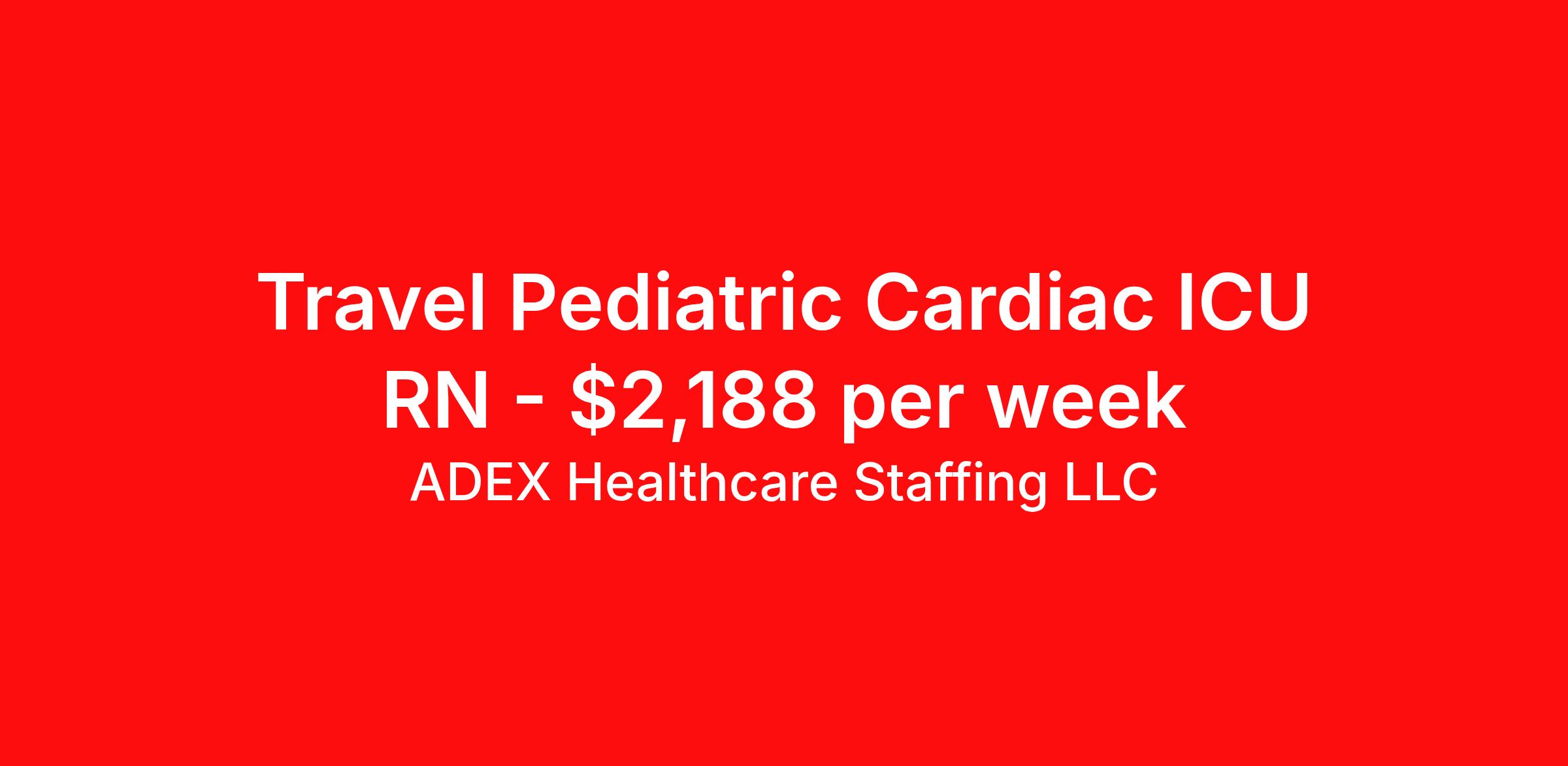 ADEX Healthcare Staffing LLC is seeking a travel nurse RN PICU - Pediatric Intensive Care for a travel nursing job in Cleveland, Ohio. Job Description & Requirements Specialty: PICU - Pediatric Intensive Care Discipline: RN Start Date: 04/26/2026 Duration: 13 weeks 36 hours per week Shift: 12 hours, nights Employment Type: Travel RN Position Job Notes: Travel or Local Registered Nurse needed for ASAP start. A minimum of 2 years of recent hospital bedside experience is required. Candidates must be able to start within 5 weeks. Opportunity for extension upon successful completion of the initial assignment. $750 referral bonus available. Opportunity: RN - Pediatrics CVICU Job Details: • Work in Pediatric Cardiac Intensive Care Unit requiring strong critical thinking skills and ICU skillset • Provide immediate cardiac post-operative patient care • Manage inotropic medications and mediastinal chest tubes • Handle central lines and arterial lines • Provide neonatal care with advanced airway management • Operate ventilators and provide family-centered care • Deliver post-cardiac catheterization care • EPIC EMR experience preferred • Patient ratios typically 1:1 or 2:1 for ICU care and 3:1 for Intermediate care • Care for cardiac patients requiring both intensive and intermediate care levels • Patients typically remain on unit until discharge Facility: This healthcare facility features a state-of-the-art 12-bed Pediatric Cardiac Intensive Care Unit that opened in November 2023. The unit specializes in comprehensive cardiac care for pediatric patients, providing both intensive and intermediate care levels. The facility is equipped with advanced medical technology and maintains high standards for cardiac patient care, offering a modern environment designed specifically for pediatric cardiac patients and their families. Location: Cleveland, OH Cleveland offers a vibrant urban environment with excellent healthcare opportunities and a rich cultural scene including world-class museums, dining, and entertainment options. The city provides affordable living costs compared to other major metropolitan areas while maintaining easy access to outdoor recreation along Lake Erie and throughout the surrounding region. Adex Job ID UHS-4818. Pay package is based on 12 hour shifts and 36 hours per week (subject to confirmation) with tax-free stipend amount to be determined. About ADEX Healthcare Staffing LLC ADEX has been placing healthcare professionals across the US since 2004. Originally founded in Atlanta, GA, the company's headquarters are now located in Tampa, FL. JCAHO certified since 2009. Benefits Referral bonus