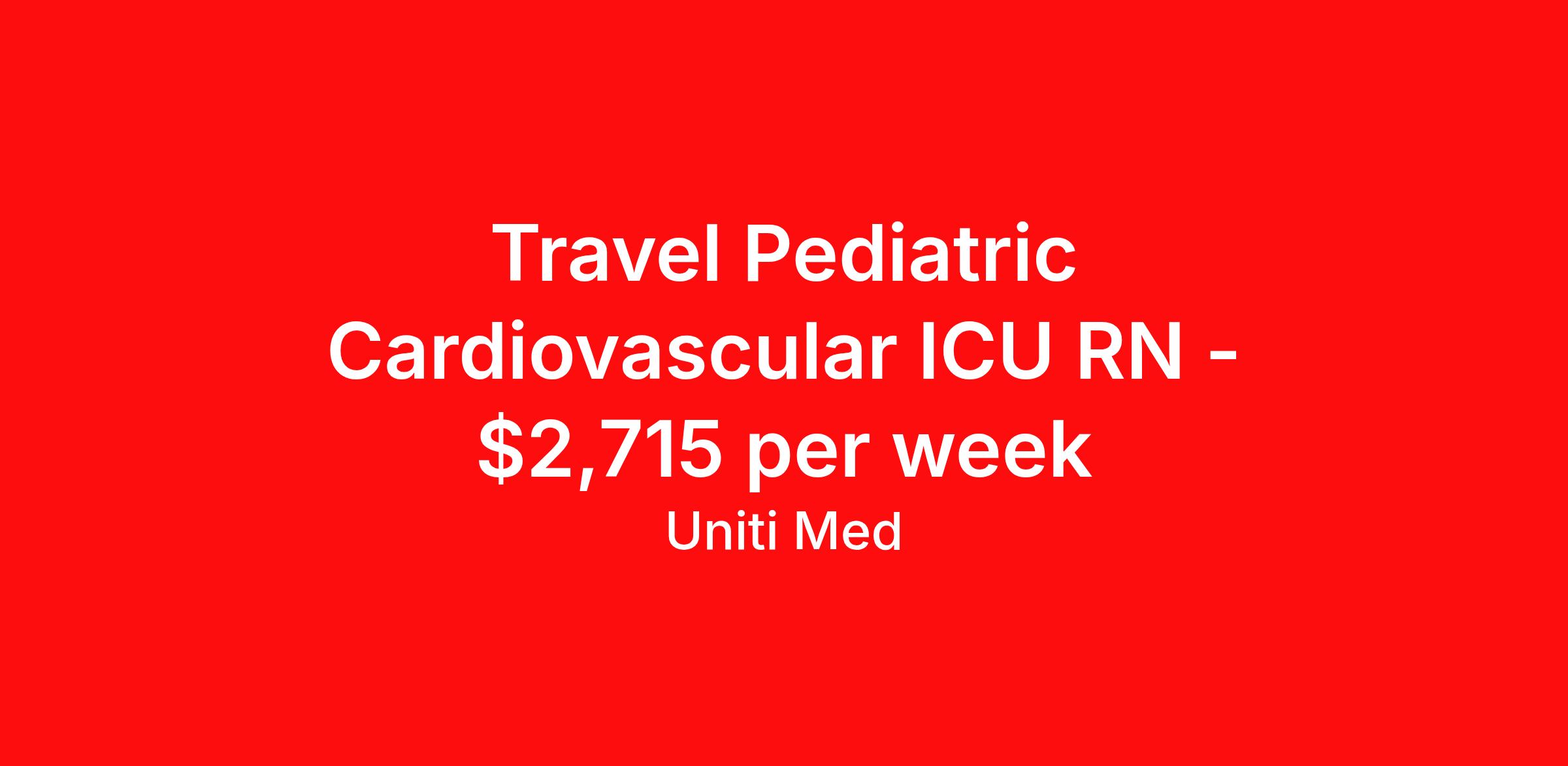 Travel Pediatric Cardiovascular ICU RN - $2,715 per week