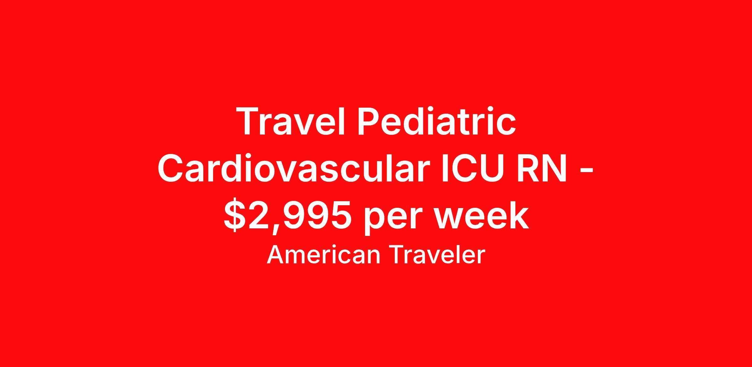 American Traveler is seeking a travel nurse RN CVPICU for a travel nursing job in Charlotte, North Carolina. Job Description & Requirements Specialty: CVPICU Discipline: RN Start Date: 03/30/2026 Duration: 13 weeks 36 hours per week Shift: 12 hours, nights Employment Type: Travel Assignment Overview Shift: Nights, 3x12hrs Hours: 36 hrs/wk Start Date: Mar 30, 2026 Length: 13 weeks Openings: 1 Description American Traveler is hiring an experienced RN for a Pediatric Cardiovascular ICU position at a Level 1 Pediatric Trauma Center and teaching hospital, requiring at least 2 years of Pediatric Cardiac ICU experience and Epic proficiency. Details 12-hour night shifts (1900–0700) in a 20-bed Pediatric Cardiovascular ICU High-acuity pediatric patient population ages 0–18 with congenital heart conditions, pre- and post-transplant care, post-cath lab, and ventricular assistive devices including ECMO, Impella, and Aquadex (renal replacement therapy) Patient ratios vary by acuity: 2:1, 1:1, or 1:2 EMR: Epic (experience required) Equipment includes Alaris IV pumps, Omnicell medication dispensing, and Philips monitors Weekend rotation every other weekend or fewer as needed (Fri/Sat/Sun) Floating required to PICU, NICU, and General Pediatrics as needed Schedule cycles every 6 weeks Requirements Active NC or compact RN license currently in hand Current certifications: BLS, PALS, and NIHSS Minimum 2 years of Pediatric Cardiac ICU experience in a similarly acute facility Most recent experience must be within the last year Experience with fresh open-heart post-op patients, transplant patients, and advanced devices including ECMO, Impella, and Aquadex Epic EMR experience required Competency to float to PICU At least 1 professional reference from a Supervisor, Manager, Director, or Charge RN dated within the past year Last 4 digits of SSN and full date of birth required for consideration Additional Information Unit is housed in a Level 1 Pediatric Trauma Center and academic teaching hospital with a nationally ranked congenital cardiology program (7 per USNWR) Unit is organized into two mirrored 10-bed sides with a centralized nurses' station; most critical patients are positioned closest to the station Departmental support includes a free-floating charge nurse and resource nurse, unit secretary every shift, IV/VAT team, in-house phlebotomy, RT 24/7, cardiologist 24/7, and intensivist 24/7 Orientation includes facility NEO plus 2 days of departmental orientation Travelers are expected to work 75% of holidays RTO requires manager approval Navy scrubs required Free parking available Candidates must have a permanent address at least 50 miles from the facility; local candidates are not accepted Former permanent employees of any AHSE facility must have been separated for at least 1 year before being eligible First-time travelers are welcome to apply American Traveler Job ID P-680081. Pay package is based on 12 hour shifts and 36 hours per week (subject to confirmation) with tax-free stipend amount to be determined. Posted job title: Travel RN - Pediatric ICU - Pediatric Cardiovascular ICU About American Traveler With over 25 years of experience, American Traveler has established a reputation for outstanding customer service. Our team ensures a smooth, worry-free experience for those starting on or expanding their travel nursing and allied careers. With thousands of travel nursing and allied jobs nationwide, our attentive and approachable recruiters find positions that align perfectly with your career aspirations and personal requirements. American Traveler offers exceptional benefits, including premium medical, dental, vision and life insurance beginning day one of your assignment, generous 401(k) match, substantial housing stipends, and more. Additionally, with 24/7 support and access to our in-house clinicians, you are assured confidence and comfort throughout your assignment. With our team behind you, you can relax and enjoy a rewarding travel career.