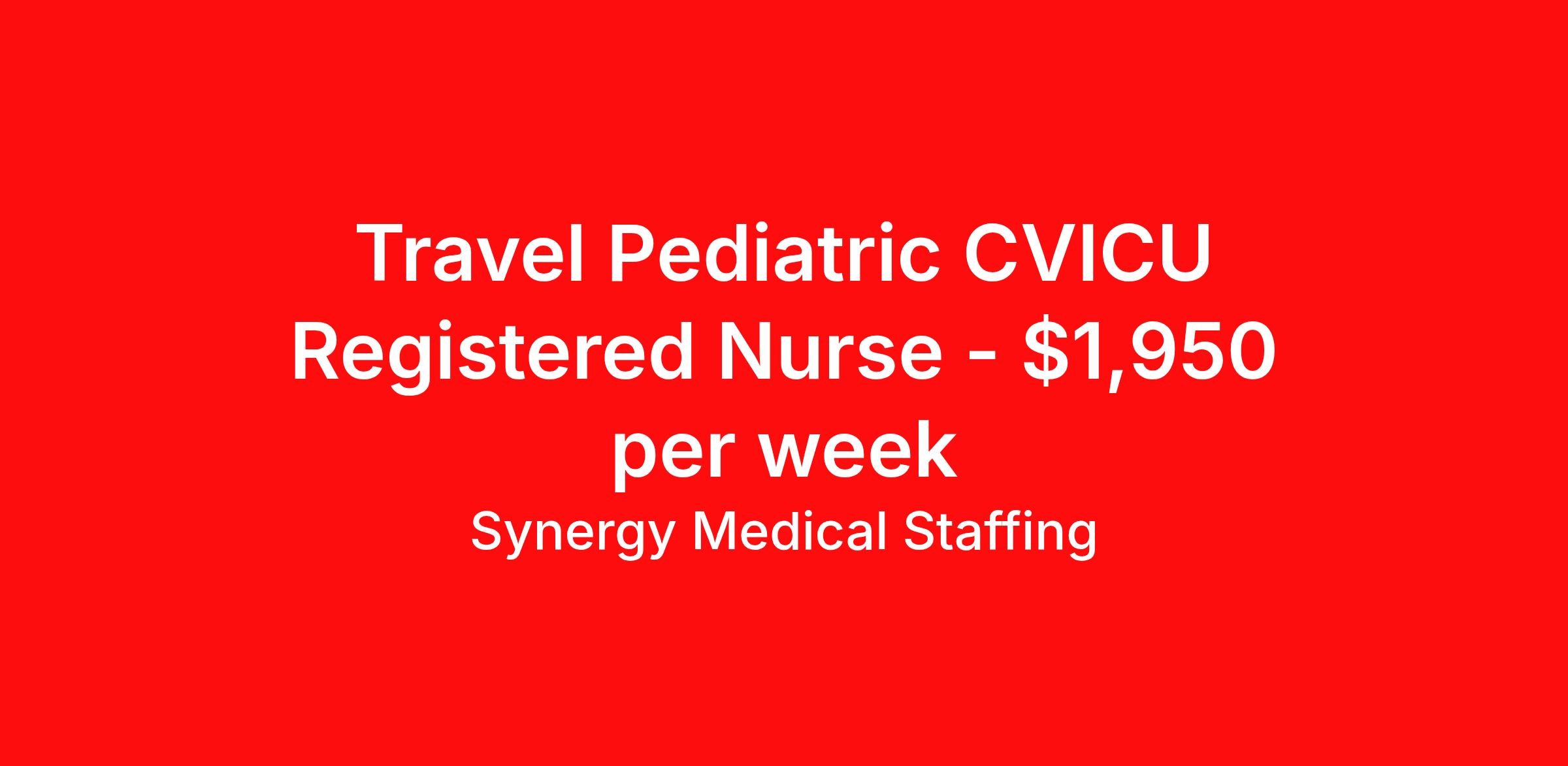 Travel Pediatric CVICU Registered Nurse - $1,950 per week