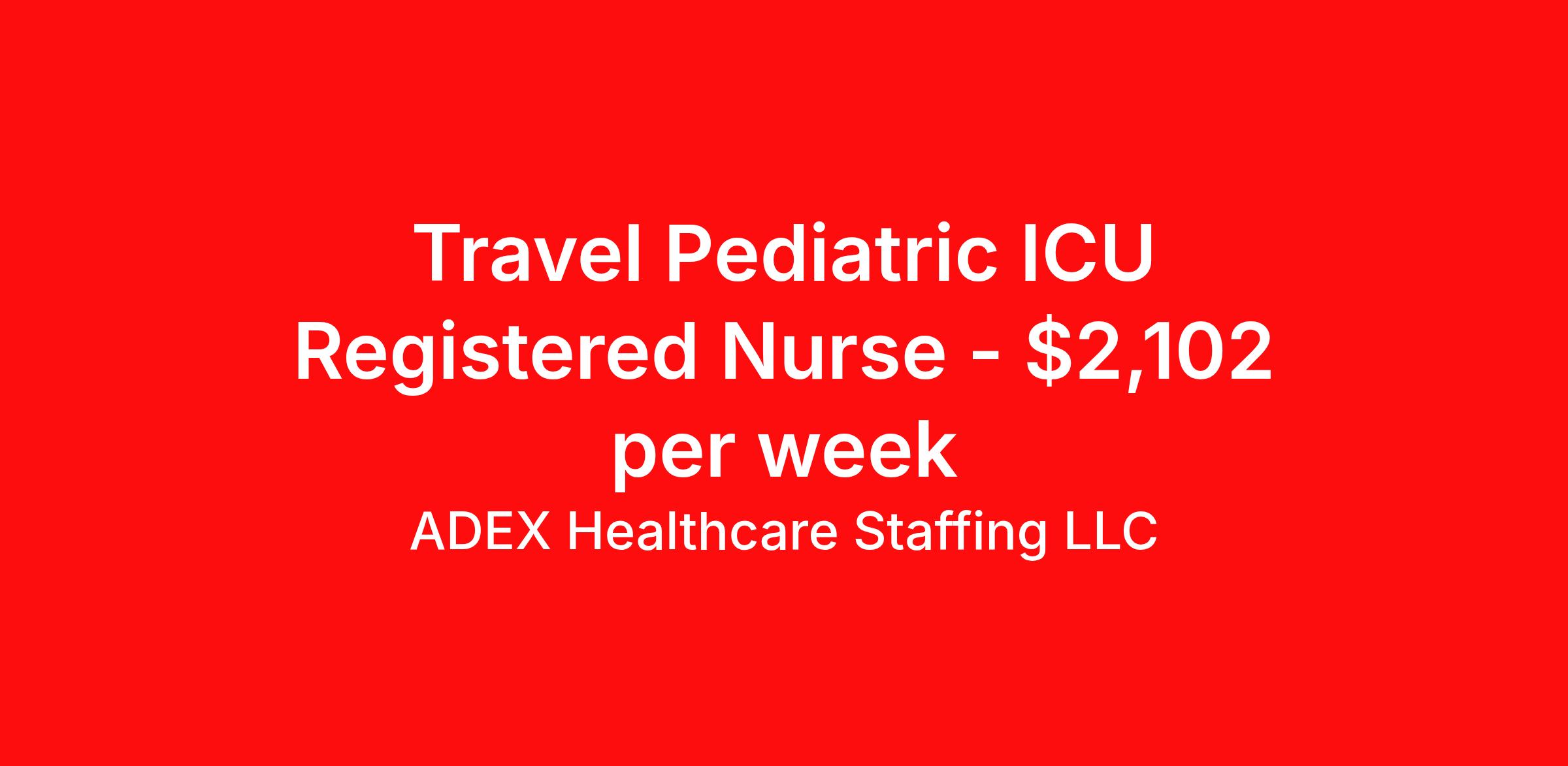 ADEX Healthcare Staffing LLC is seeking a travel nurse RN PICU - Pediatric Intensive Care for a travel nursing job in San Antonio, Texas. Job Description & Requirements Specialty: PICU - Pediatric Intensive Care Discipline: RN Start Date: 03/23/2026 Duration: 13 weeks 36 hours per week Shift: 12 hours, nights Employment Type: Travel RN Position Job Notes: Travel or Local Registered Nurse needed for ASAP start. A minimum of 2 years of recent hospital bedside experience is required. Candidates must be able to start within 5 weeks. Opportunity for extension upon successful completion of the initial assignment. $750 referral bonus available. Opportunity: RN - PICU Job Details: • Work 12-hour night shifts from 7:00 PM to 7:00 AM • Full-time position with ASAP start required • Must have ventilator and pediatric ICU experience • Temp to perm possible with 3 positions available • Provide routine and complex nursing care utilizing the nursing process including assessment, diagnosis, planning, intervention and evaluation • Address complex psychological, emotional, cultural, and social needs of pediatric patients and families • Administer medications and treatments while monitoring for side effects and effectiveness • Document patient history, symptoms, medications, and care provided • Assess learning needs and provide education to patients, families and caregivers • Make appropriate assignments and delegate to other care providers • Required certifications: Current BLS, ACLS, and PALS (AHA only) • Texas RN license or compact license required • Bachelor of Science Degree in Nursing preferred • 1 year of related nursing specialty experience preferred • Must attend New Nurses Orientation within first 30 days • Complete organizational entry competency validation and Pediatric Services-specific competency validation • Complete all annual competency verification requirements Facility: This specialized children's hospital provides comprehensive pediatric healthcare services with a focus on critical care. The facility features a dedicated Pediatric Intensive Care Unit equipped with advanced technology and staffed by experienced healthcare professionals. The organization emphasizes high-quality patient care and maintains strict competency standards for nursing staff to ensure optimal outcomes for critically ill pediatric patients. Location: San Antonio, TX San Antonio offers a vibrant blend of rich cultural heritage, excellent dining, and entertainment options, making it an attractive location for healthcare professionals. The city provides a lower cost of living compared to other major metropolitan areas while offering numerous recreational activities and a warm climate year-round. Adex Job ID 990418. Pay package is based on 12 hour shifts and 36 hours per week (subject to confirmation) with tax-free stipend amount to be determined. About ADEX Healthcare Staffing LLC ADEX has been placing healthcare professionals across the US since 2004. Originally founded in Atlanta, GA, the company's headquarters are now located in Tampa, FL. JCAHO certified since 2009. Benefits Referral bonus