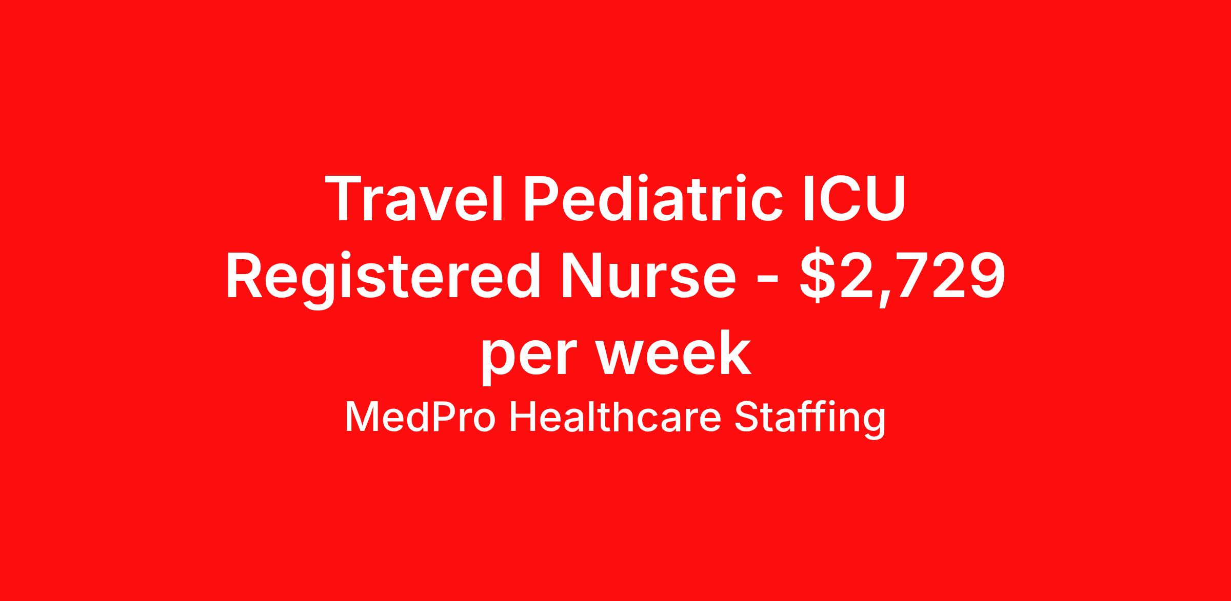 MedPro Healthcare Staffing is seeking a travel nurse RN PICU - Pediatric Intensive Care for a travel nursing job in Oklahoma City, Oklahoma. Job Description & Requirements Specialty: PICU - Pediatric Intensive Care Discipline: RN Start Date: 04/06/2026 Duration: 13 weeks 36 hours per week Shift: 12 hours, nights Employment Type: Travel MedPro Healthcare Staffing , a Joint Commission-certified staffing agency, is seeking a quality PICU Registered Nurse (RN) for a travel assignment with one of our top healthcare clients. Requirements Eighteen months of recent experience in an Acute Care NICU setting Active RN License PALS & NRP Certifications Degree from accredited nursing program Other requirements to be determined by our client facility Benefits Weekly pay and direct deposit Full coverage of all credentialing fees Private housing or housing allowance Group Health insurance for you and your family Company-paid life and disability insurance Travel reimbursement 401(k) matching Unlimited Referral Bonuses up to $1,000 Duties Responsibilities The Pediatric intensive care unit (PICU), a high-tech children’s services area for critically ill, medically complex, and/or post-surgical patients. The pediatric intensive care RN collaborates with families, physicians, and other healthcare officials to determine the best course of patient care and recovery. Provide care for children and adolescents, usually up to the age of 18, with life-threatening or high-acuity conditions that require constant monitoring. Prioritize careful monitoring of patients, and reports regularly to the pediatrician, and family on the patient's condition, and what they can expect in recovery. About Agency MedPro Healthcare Staffing is a Joint Commission certified provider of contract staffing services. Since 1983, we have placed nursing and allied travelers in top healthcare facilities nationwide. Join us today for your very own MedPro Experience®. If qualified and interested, please call for immediate consideration. MedPro Staffing is an Equal Opportunity Employer. All applicants will be considered for employment without attention to race, color, religion, national origin, age, sex, disability, marital status or veteran status. Key Words: Registered Nurse, RN, PICU, Pediatric Intensive Care Unit, Contract Nurse, Travel Nurse, Agency RN, Travel RN, Nursing, Contract, Travel Nursing *Weekly payment estimates are intended for informational purposes only and include a gross estimate of hourly wages and reimbursements for meal, incidental, and housing expenses. Your recruiter will confirm your eligibility and provide additional details. MedPro Job ID a0Fcx00000GbPMPEA3. Pay package is based on 12 hour shifts and 36 hours per week (subject to confirmation) with tax-free stipend amount to be determined. Posted job title: PICU Registered Nurse Nursing: PICU-Pediatric Intensive Care. About MedPro Healthcare Staffing At MedPro Healthcare Staffing , we believe no one cares more for caregivers than we do. Our mission is simple: you focus on your patients, and we’ll take care of the rest. As a Joint Commission-certified leader in temporary and contract healthcare staffing since 1983, MedPro has proudly connected nursing and allied travelers with top healthcare facilities across the nation. With thousands of job opportunities available nationwide, we make it easy to find assignments that align with your goals and lifestyle. Our on-staff clinical support team—alongside a compassionate group of experienced recruiters—provides hands-on guidance every step of the way. From Day 1 medical benefits and a 401(k) plan to personalized career support, we’re committed to ensuring every professional we serve feels valued, cared for, and empowered to succeed. Guided by a CEO who is a Registered Nurse, MedPro is built on a foundation of clinical insight and genuine compassion for the caregiving community. Through The MedPro Experience® , we deliver travel assignments that are rewarding, memorable, and designed to help you DREAM big, EXPLORE often, and ACHIEVE greatness. Benefits Day 1 medical, dental, and vision benefits for you and your family Weekly pay and direct deposit Unlimited Referral Bonuses starting at $500 On Staff Clinical Support Team Access to nationwide travel assignments MPX Mobile app -24/7 real-time access to jobs, credentials, assignment details, and more Full coverage of all credentialing fees Private housing or housing allowance Tax Free Per Diems, Housing Stipends and Travel Reimbursements Company-paid life and disability insurance Travel reimbursement 401(k) matching Benefits Weekly pay Referral bonus Employee assistance programs