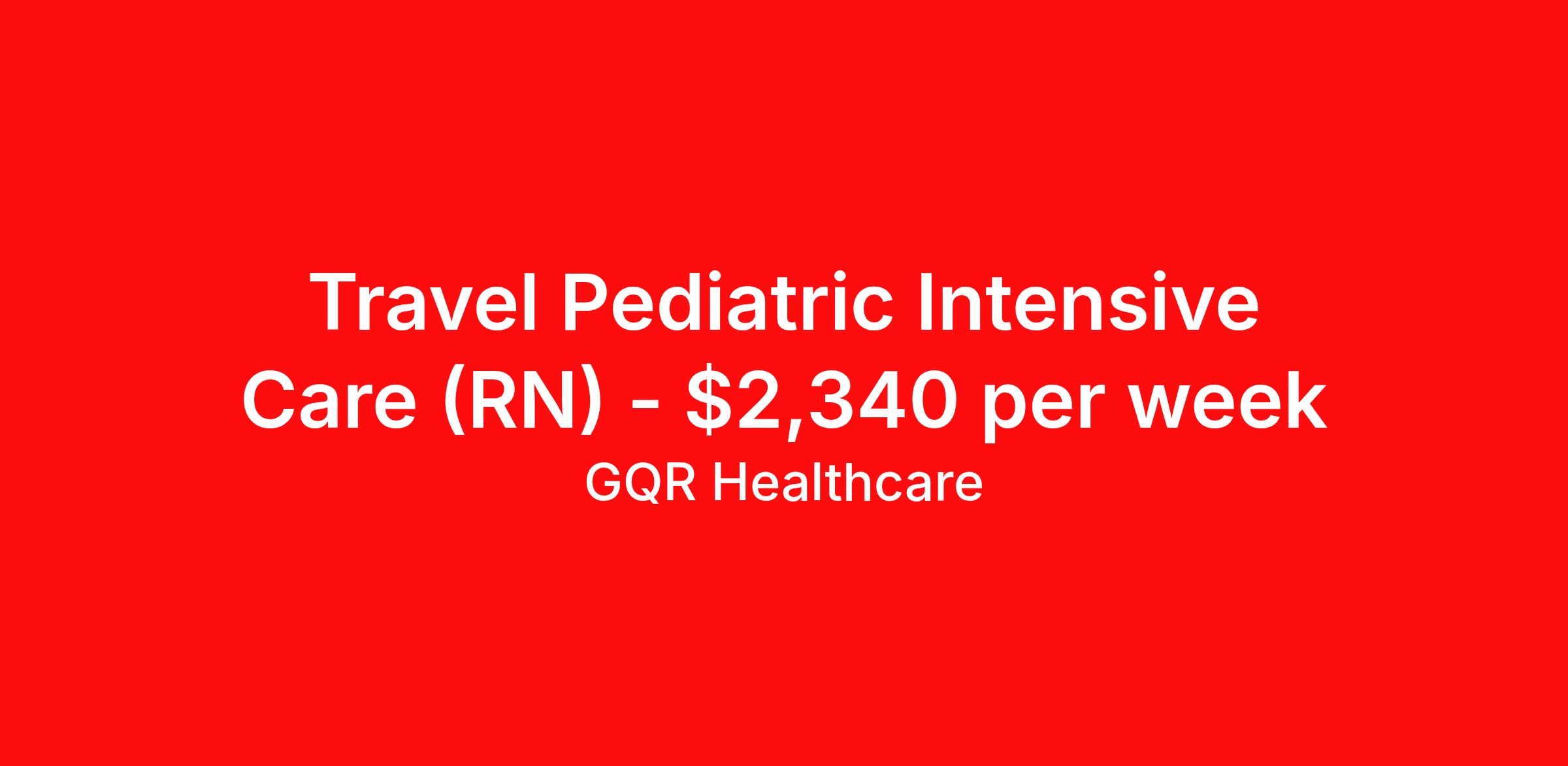 GQR Healthcare is seeking a travel nurse RN PICU - Pediatric Intensive Care for a travel nursing job in Indianapolis, Indiana. Job Description & Requirements Specialty: PICU - Pediatric Intensive Care Discipline: RN Start Date: ASAP Duration: 13 weeks 36 hours per week Shift: 12 hours, nights Employment Type: Travel GQR Healthcare is representing a well-known health system seeking experienced Pediatric Intensive Care Unit providers to add to their team. If you are passionate about providing exceptional care and looking to explore a rewarding career opportunity, we'd love to hear from you! Apply now, and a dedicated GQR consultant will connect with you to discuss the role, answer your questions, and guide you through the process. About GQR Healthcare: At GQR Healthcare, we are committed to supporting healthcare professionals at every stage of their careers. When you partner with us, you gain access to a wide range of benefits and support, including: Day 1 Benefits: Enjoy comprehensive healthcare coverage, including medical, dental, and vision plans, starting on your first day. Guaranteed Hours: We provide contract stability by offering guaranteed hours, ensuring you have the predictability you need. Continuing Education & Development: We invest in your growth by offering opportunities for professional development and ongoing education. 24/7 Consultant Support: Our dedicated consultants are available around the clock to assist with any needs or questions you have. Seamless Placement Process: We handle all the details, from onboarding to interviews, so you can focus on what you do best - providing exceptional patient care. Partnering with GQR means more than just finding your next job - it's about building a meaningful career with a team that truly supports your goals. GQR Job ID 223252. Pay package is based on 12 hour shifts and 36 hours per week (subject to confirmation) with tax-free stipend amount to be determined. Posted job title: Registered Nurse (RN) About GQR Healthcare GQR’s Healthcare team specializes in connecting experts within the industry to highly skilled healthcare professionals across the US market. In the competitive healthcare market, we recognize that the industry’s common goals of improved quality of care and patient outcomes are wholly reliant upon the professionals directly supporting these initiatives. Leveraging our extensive candidate network, we deliver continuity of care for the communities our partners serve to ensure the patient experience is of the highest quality. Through deep market specialization and a unique approach to talent acquisition, GQR Healthcare provides an unparalleled and personalized experience across all medical specialties in nursing and within diverse healthcare platforms across the industry.