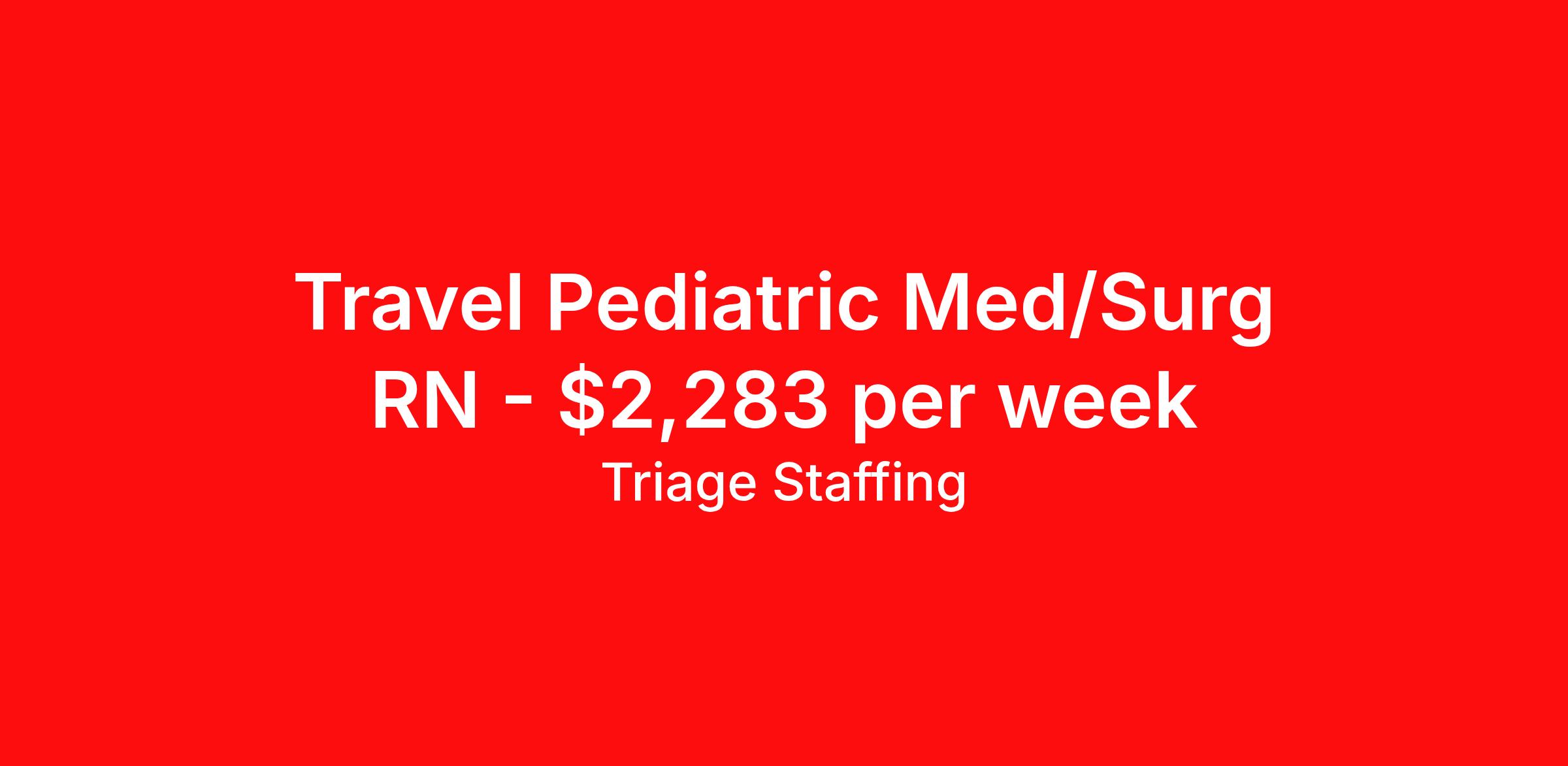 Triage Staffing is seeking a travel nurse RN Pediatric Med Surg for a travel nursing job in Oklahoma City, Oklahoma. Job Description & Requirements Specialty: Pediatric Med Surg Discipline: RN Start Date: ASAP Duration: 13 weeks 36 hours per week Shift: 12 hours, nights Employment Type: Travel Travel Nursing: Pediatrics Oklahoma City Location: Oklahoma City Start Date: 2/23/2026 Shift Details: 12H Nights 36 hours per week Length: 13 WEEKS Apply for specific facility details.PEDS RN Triage Staffing Job ID VAYN94C7. Posted job title: Nursing: Pediatrics About Triage Staffing At Triage, we prefer to be real . Real about expectations—both ours and yours. Real about how a decision you make today could affect your tomorrows. Real about how compensation actually works. Real about how great—or grating—your next supervisor may be. Being real allows everyone at Triage to be ready . Ready to serve you with real honesty. So if that gig near the ocean is really no day at the beach, or that third shift comes with a second-class rate, we tell you. So you can be ready, too. We staff all five major divisions of acute care—nursing, lab, radiology, cardiopulmonary and rehab therapy, offering: - Competitive, custom pay packages - One point of contact for both travelers and facilities (per division) - A reliable recruiter who's got your back throughout your entire assignment - In-house compliance and accounting specialists - A clinical liaison team available 24/7 to offer medical and professional support and career development - A mentoring program that is run and managed by actual clinicians—yeah, you read that right - And more (because of course there’s more) Are we the biggest? No. Are we the best? That’s rather subjective, but we’re trying to be. Will we work like hell to get you as close to your idea of heaven as possible? Yes. Yes, we will. Benefits: Day One comprehensive, nationwide insurance plans for health, vision and dental and life—including a HSA option Day One 401(k) program with employer-matching contributions once eligible Facility cancelling protection—your time is money on and off-the-clock Guaranteed hours Weekly paychecks via direct deposit Earned vacation bonuses for time worked Paid holidays Employee assistance program (EAP)—your mental health is important, too Continuing education, certification and licensing reimbursement Workers comp—because accidents happen Top-rated professional liability insurance Company provided housing options Referral bonus—$750 in your pocket after they’ve completed a 13-week assignment