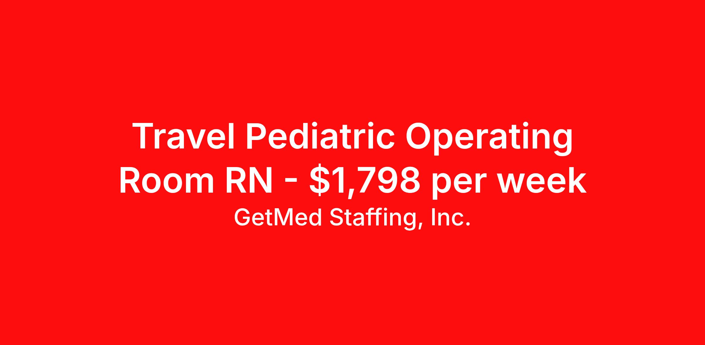 GetMed Staffing, Inc. is seeking a travel nurse RN OR - Operating Room for a travel nursing job in Charleston, West Virginia. Job Description & Requirements Specialty: OR - Operating Room Discipline: RN Start Date: 04/16/2026 Duration: 13 weeks 40 hours per week Shift: 8 hours, days Employment Type: Travel GetMed Staffing is searching for a strong OR RN to assist our traveler-friendly client. A minimum of 1-2 years of experience is required. Traveling with GetMed Staffing offers the unique opportunity to gain diverse experiences, both personally and professionally. Gain experience that matters. GetMed Staffing, Inc. Job ID 36120248. Pay package is based on 8 hour shifts and 40.0 hours per week (subject to confirmation) with tax-free stipend amount to be determined. Posted job title: RN:OR,07:00:00-15:00:00 About GetMed Staffing, Inc. We are a diversity owned company, specializing in healthcare recruiting services. We truly understand how important a healthcare travelers' relationship is with their recruiter, as well as our relationship is with our healthcare facilities. We recognize that the needs of our healthcare travelers can vary, and therefore we provide the personalized touch necessary to ensure a successful travel assignment each and every time. Our healthcare facilities and clients benefit from us putting our healthcare travelers first. GetMed Staffing is excited to be a leader within the industry by focusing on providing healthcare travelers with more choices and possibilities as they plan for their next healthcare travel assignment. Benefits Life insurance Medical benefits Dental benefits Vision benefits 401k retirement plan
