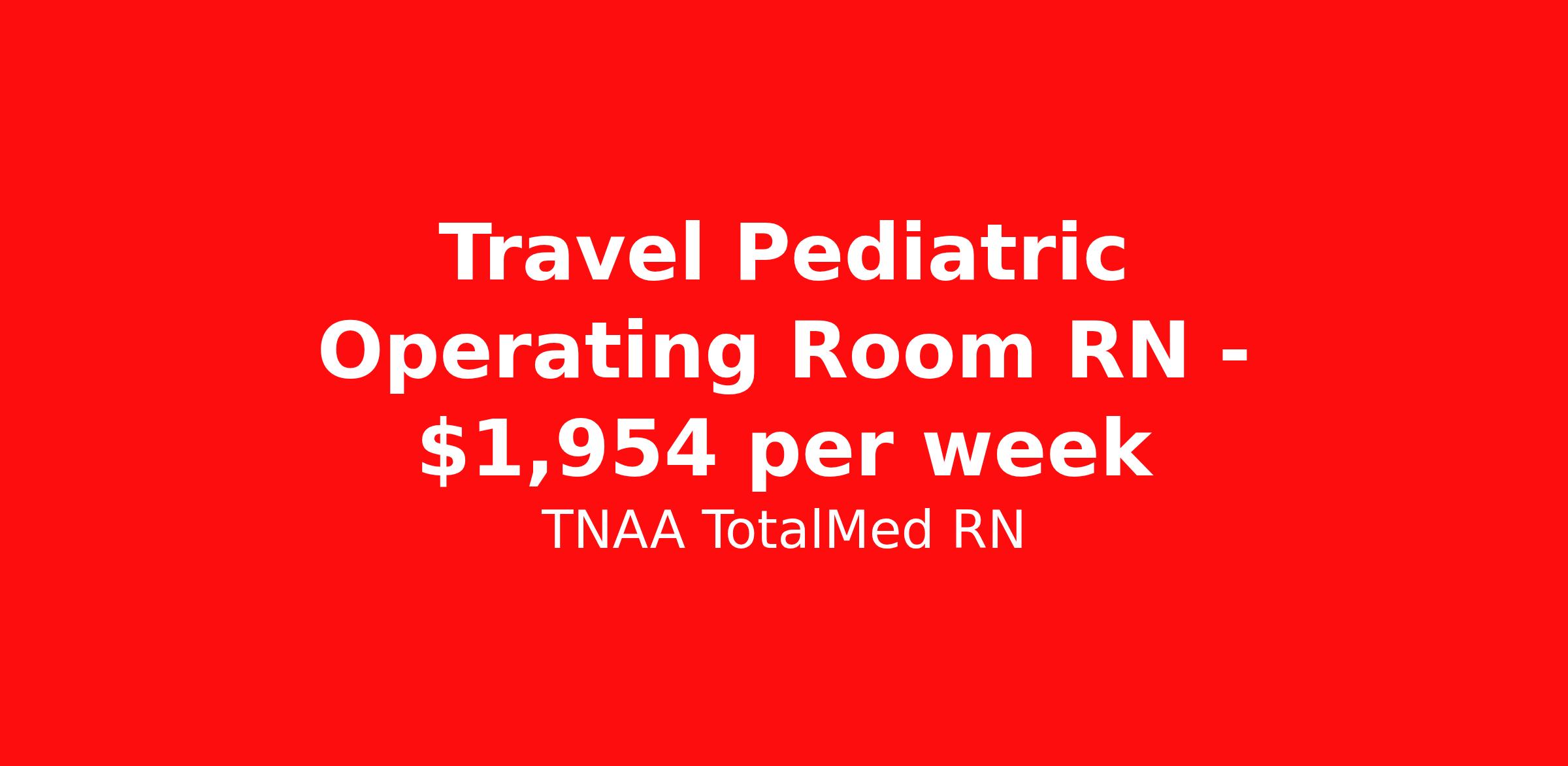 TNAA TotalMed RN is seeking a travel nurse RN Pediatrics OR - Operating Room for a travel nursing job in Charleston, West Virginia. Job Description & Requirements Specialty: Pediatrics OR - Operating Room Discipline: RN Start Date: 04/16/2026 Duration: 13 weeks 40 hours per week Shift: 8 hours, days Employment Type: Travel We're looking for Operating Room RNs for an immediate travel nurse opening in Charleston, WV. The right RN should have 1-2 years recent acute care experience as a circulating nurse, and/or scrub nurse, and potentially RN first assistant. Read below for more requirements. As an OR Travel Nurse, you will assist physicians and medical staff in caring for surgical patients, as well as providing pre- and post-surgery care and education to the patient. Circulating OR Nurses work within the operating suite but outside of the sterile field; Scrub OR Nurses handle and prepare operating instruments and equipment within the sterile field. Surgery responsibilities may include preparing instruments for specific surgical procedures, monitoring and observing the patient during surgery, and responding to potential complications alongside the physician. As an OR Travel Nurse, you should be prepared to perform the following tasks: Provide basic bedside care. Prepare, administer and record prescribed medication, reporting any adverse reactions to treatment. Serve as the communication liaison between patients' family members and members of the operating team. Ensure that the correct procedure(s) is being performed on the correct patient. Initiate patient education plan as prescribed by physician; teach patients and families how to manage medication and home care needs. Additional duties for Circulating OR Nurses may include: Responding to comfort and safety needs of patient. Accurate care and handling of specimens. Monitoring equipment used during surgery. Inventory of surgical items pre- and post-procedure. Additional duties for Scrub OR Nurses may include: Selection and handling of surgical instruments and supplies during procedures. Inventory of surgical items pre- and post-procedure. Additional duties for RN First Assistant may include: Assist physicians by delivering direct surgical care. Help control bleeding. Suture patients following surgery. OR Travel Nurses should be able to stand and walk for long periods of time, as well as bend, lean and stoop without difficulty. RNs should be able to easily lift 20 pounds. Moving or lifting of patients may require lifting of up to 50 pounds at times. RNs may face hazards from exposure to certain chemicals or infectious diseases in the operating room environment. Requirements*: BLS, 2 Years * Additional certifications may be required before beginning an assignment. TotalMed Travel Job ID 1395641. Pay package is based on 8 hour shifts and 40 hours per week (subject to confirmation) with tax-free stipend amount to be determined. Posted job title: Operating Room - OR RN - Travel Nurse About TNAA TotalMed RN TotalMed is a Top Ten, travel nursing and healthcare staffing agency with the mission of igniting purpose in healthcare. The organization staffs nurses, therapists, pharmacists, and other clinicians of all specialties in all 50 states. They offer local and travel jobs and match caregivers with the right organization to assist both facilities and patients. As an organization, they focus on putting highly-skilled staff into facilities to ensure adequate staffing for a better patient experience. TotalMed specializes in recruiting and placing healthcare professionals in travel, PRN, and permanent positions across the country in Nursing and Allied Health. Throughout 2020, the organization filled roles at even the most short-staffed facilities during the most challenging time in healthcare. By matching the right travel healthcare professional with the right organization, TotalMed continues to offer a lifeline to facilities and their patients. Benefits Weekly pay Guaranteed Hours Continuing Education 401k retirement plan Sick pay Wellness and fitness programs Referral bonus Employee assistance programs Medical benefits Dental benefits Vision benefits Benefits start day 1