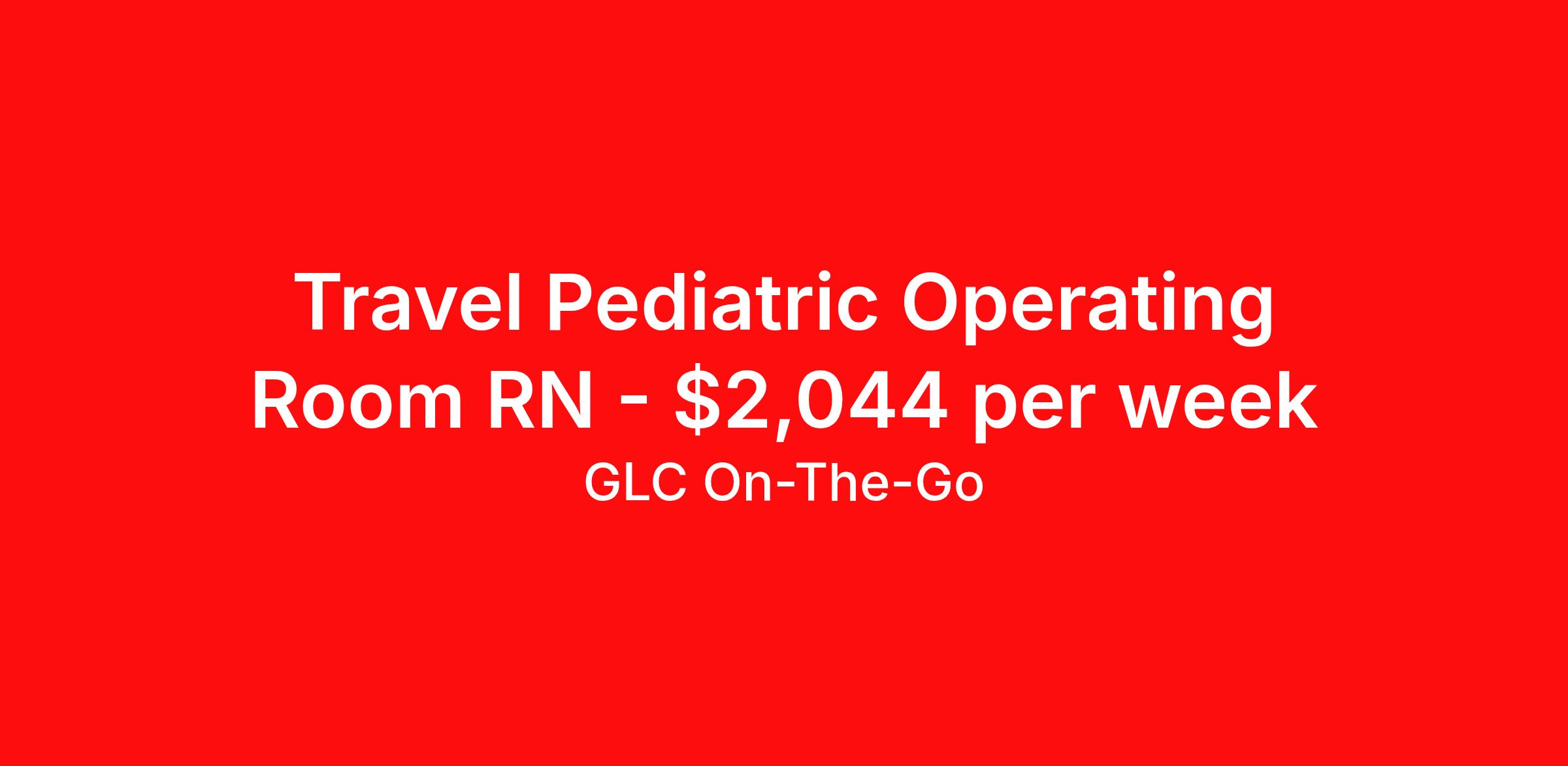 GLC On-The-Go is seeking a travel nurse RN OR - Operating Room for a travel nursing job in Charleston, West Virginia. Job Description & Requirements Specialty: OR - Operating Room Discipline: RN Start Date: 04/02/2026 Duration: 13 weeks 40 hours per week Shift: 8 hours Employment Type: Travel GLC is hiring: RN Operating Room (OR) - Charleston, WV - 13-week contract GLC – Named Best Nurse Agency 2024–2025 We connect nurses, nursing professionals, and allied health professionals like you to contracts that align with your skills, schedule, and career goals. About this Assignment Join the care team in Operating Room (OR) where you’ll provide patient-centered care in a collaborative environment. Typical responsibilities include direct patient care, timely documentation, and coordination with the care team. Specific duties will be confirmed during your interview with a recruiter. Assignment Details Location: Charleston, WV Assignment Length: 13 weeks Start Date: 04/02/2026 End Date: 07/02/2026 Pay Range: $1,840 - $2,044 Minimum Requirements Active license in Operating Room (OR) 1 year full-time RN, Operating Room (OR) experience within the last 2 years What you can expect from GLC Weekly on-time pay with direct deposit Transparent communication, clear assignment details, and recruiter support from start to finish - or extension Referral bonus up to $500 Health, dental, and vision insurance 401(k) plan Completion and signing bonuses may also be available Ready to move forward? Apply now and start your rewarding journey with GLC - a recruiter will connect quickly to review pay , start date , and assignment details so you can make the best decision for your next contract. GLC On-The-Go Job ID 501788. Pay package is based on 8 hour shifts and 40 hours per week (subject to confirmation) with tax-free stipend amount to be determined. Posted job title: Operating Room Registered Nurse About GLC On-The-Go GLC is more than just a staffing agency – we’re your trusted partner in finding travel, local, and PRN contracts that align with your career aspirations and lifestyle. We specialize in connecting travel nurses and allied healthcare professionals like you with opportunities in acute care, long-term care, behavioral health, and allied fields across the U.S. Our attentive and friendly recruiters are always just a call or text away, ready to guide you at every step, ensuring you feel valued and heard. We understand the unique needs of travel healthcare professionals, which is why we offer comprehensive benefits and 24/7 support. Join GLC, where our 20 years of experience mean we know how to help you find the assignments that turn your career goals into reality. With us, it's not just a placement – it's your dream career made possible
