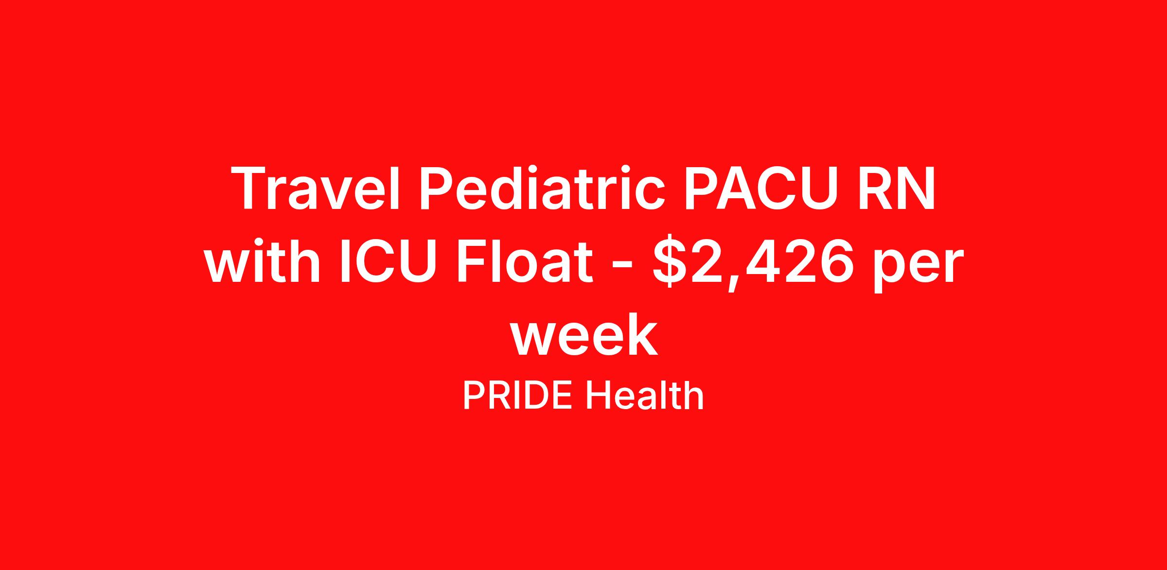 Travel Pediatric PACU RN with ICU Float - $2,426 per week